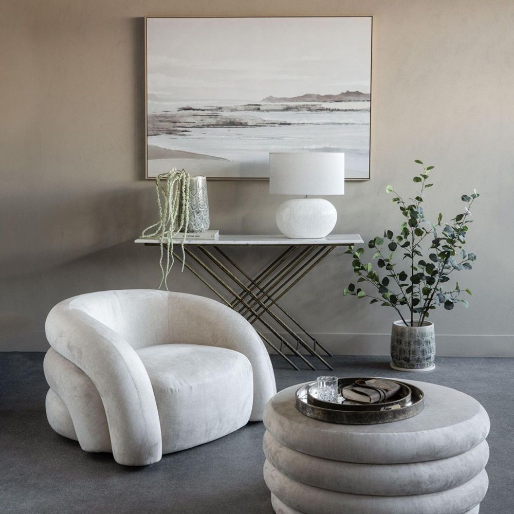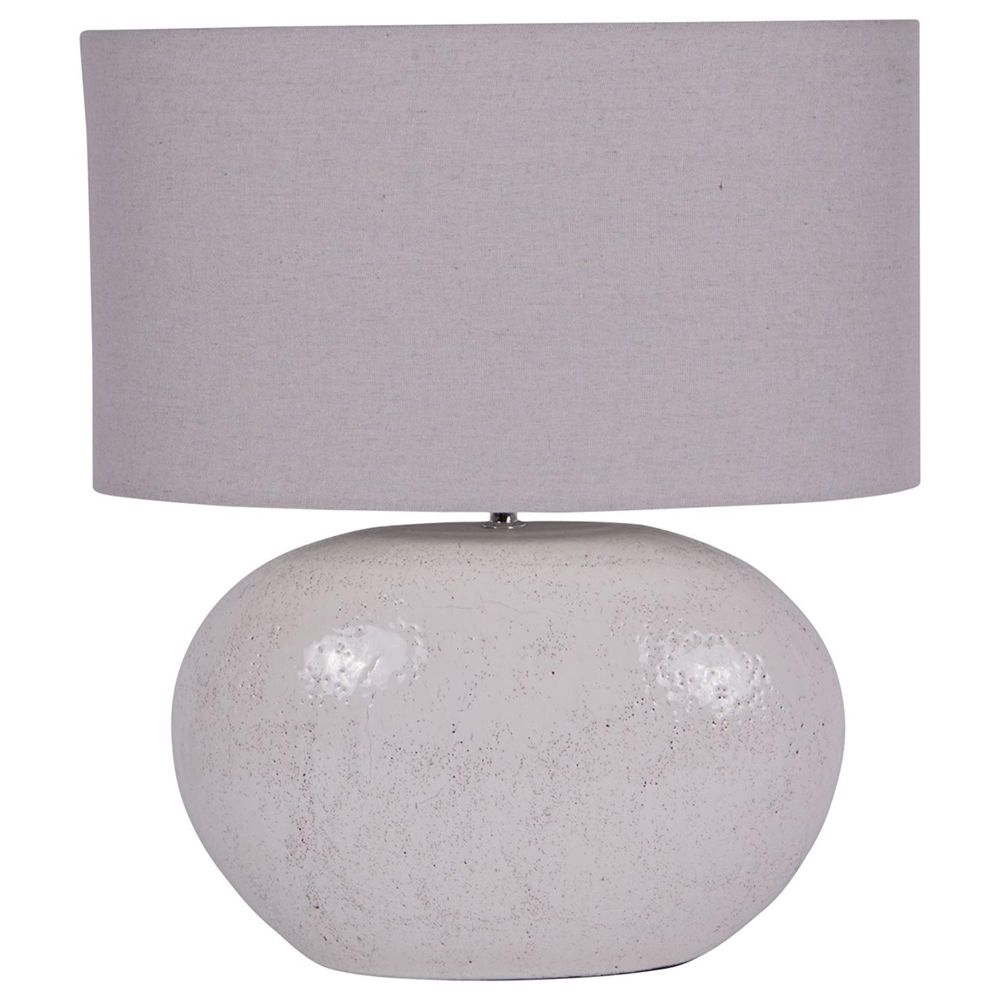 Item Code: 705993 Introducing our Oviedo Terracotta Table Lamp-a captivating addition to your home decor. Its base, resembling an oversized oval pebble, features intricate pitting and veining within a glazed white finish, radiating understated sophistication. With its versatile neutral tone, the Oviedo Table Lamp effortlessly complements any decor scheme. Its subtle yet distinctive design adds a touch of unique charm to any space, perfect for those who value both style and substance. Sold with Shade. Base dimensions: W41 x D14 x H32cm. Cable length: 130cm. Switch type: Standard Toggle Switch.Free Delivery