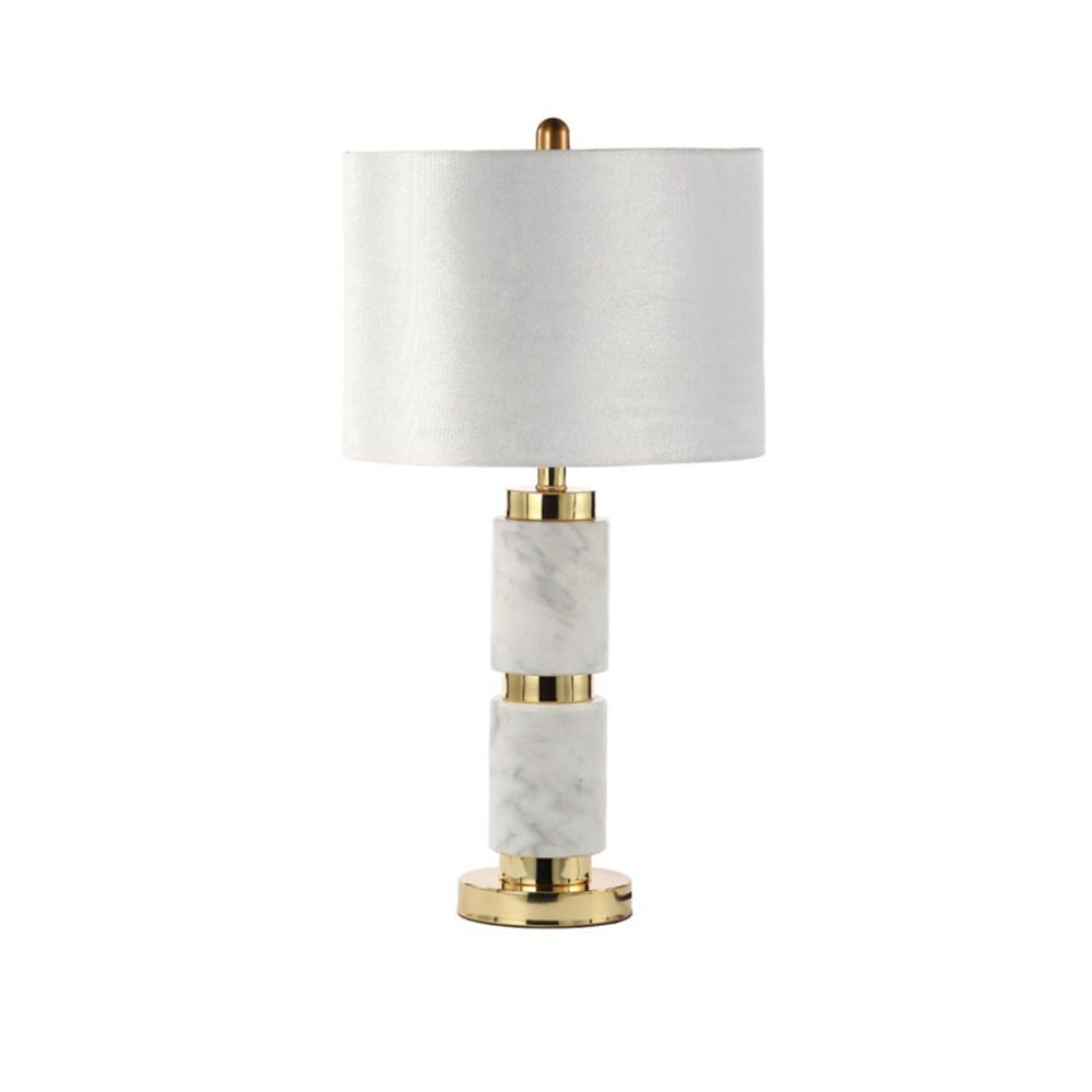 Our stunning 70cm White Marble Table Lamp, a fusion of opulence and contemporary design. Crafted with a sleek white marble base, it exudes sophistication and durability. Paired with a Cream Velvet Shade, this lamp emanates warmth and luxury, casting a soft, inviting glow. A perfect accent for modern or classic interiors, this piece seamlessly blends style and functionality, elevating any space with its elegant presence. Illuminate your room with refined beauty and timeless charm with this exquisite lamp.Free Delivery