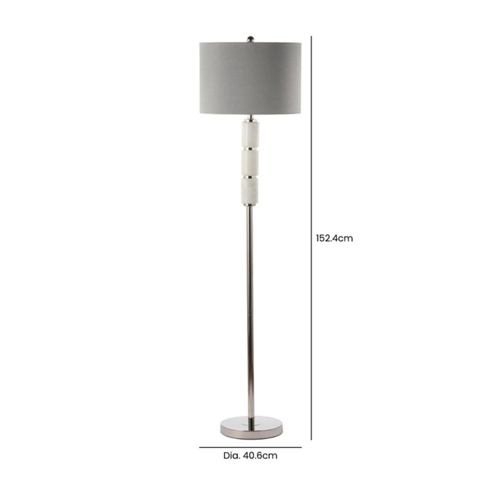 Item Code: EU-CT558-L0-SLK-GYWH Elevate your space with the exquisite beauty of our White Marble Floor Lamp with Grey Faux Silk Shade. Its combination of white marble and grey faux silk creates a striking contrast that complements various decor styles.Free Delivery