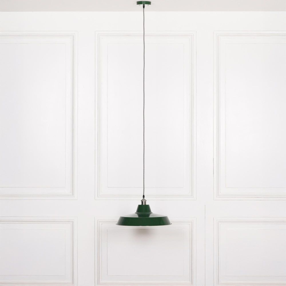 British Factory Style Pendant Light - Green Painted Metal - 46cm