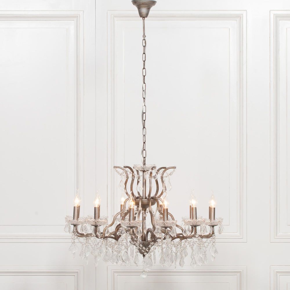 French Style Shallow Cut Glass Chandelier - Antique Silver - 12 Branch