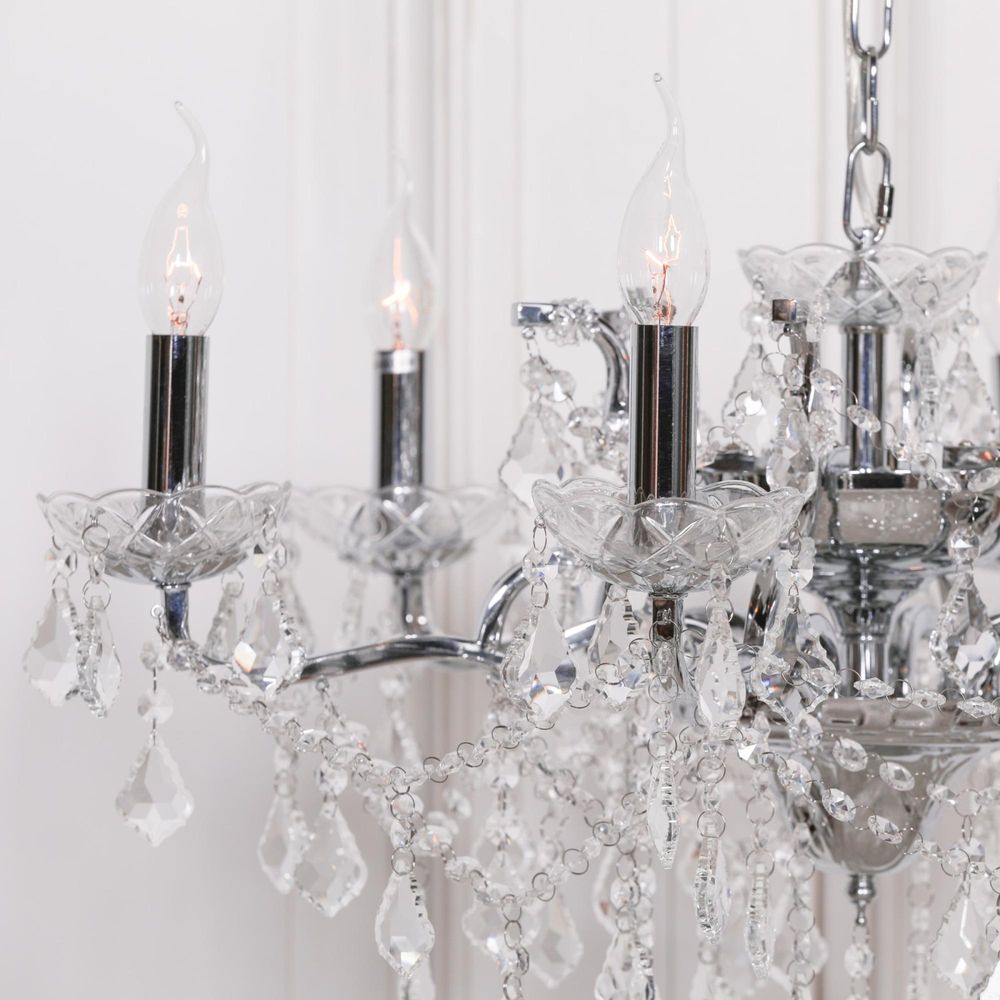 French Style Shallow Cut Glass Chandelier - Chrome - 6 Branch