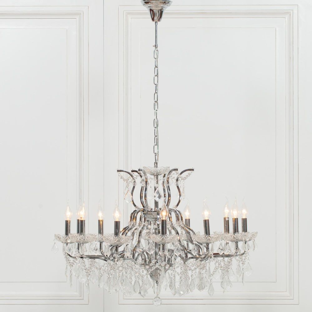 French Style Shallow Cut Glass Chandelier - Chrome - 12 Branch
