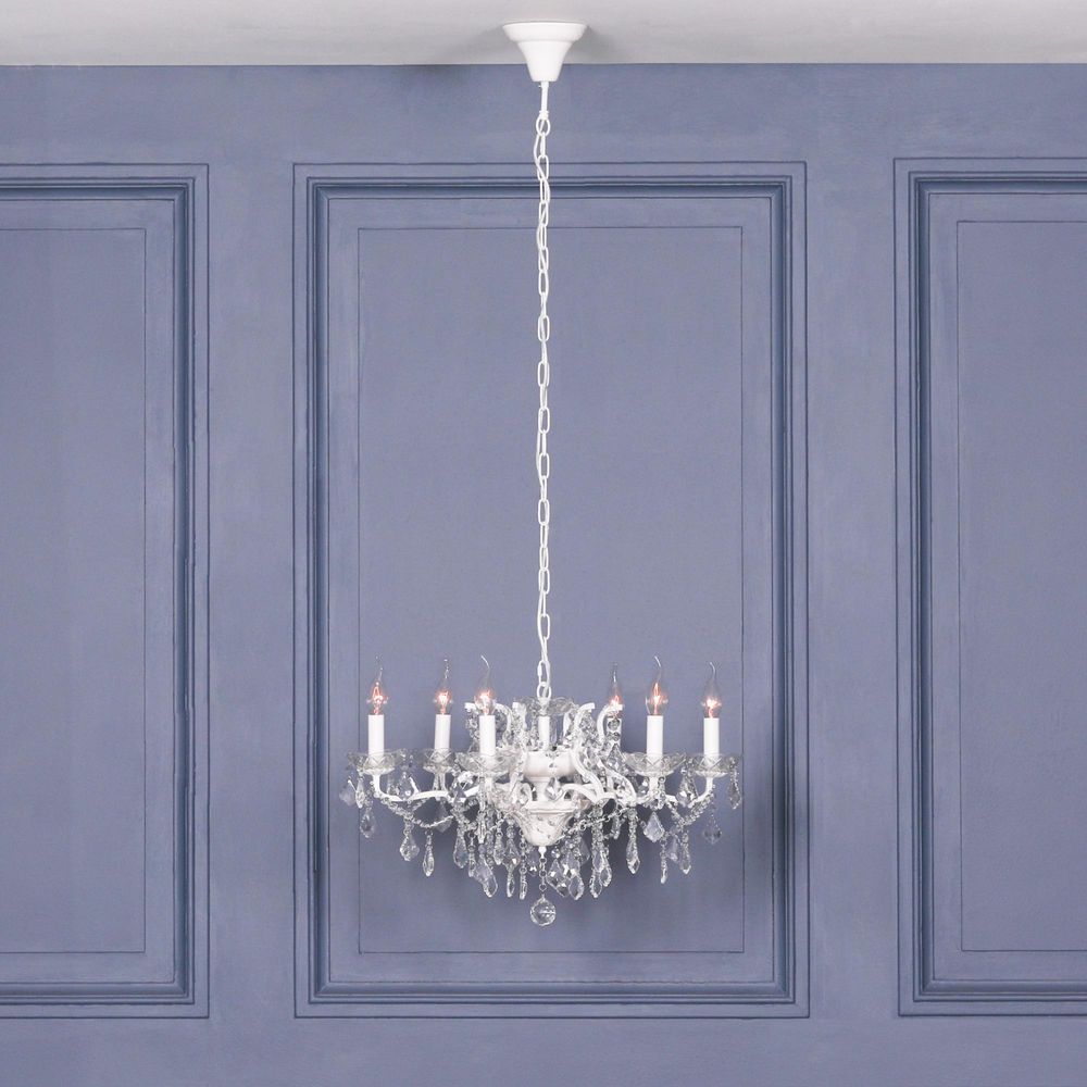 French Style Shallow Cut Glass Chandelier - White - 6 Branch