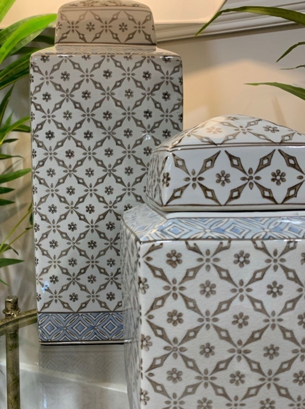 Item Code: MY047 Stretched geometric style jar with gold finish along the edges.