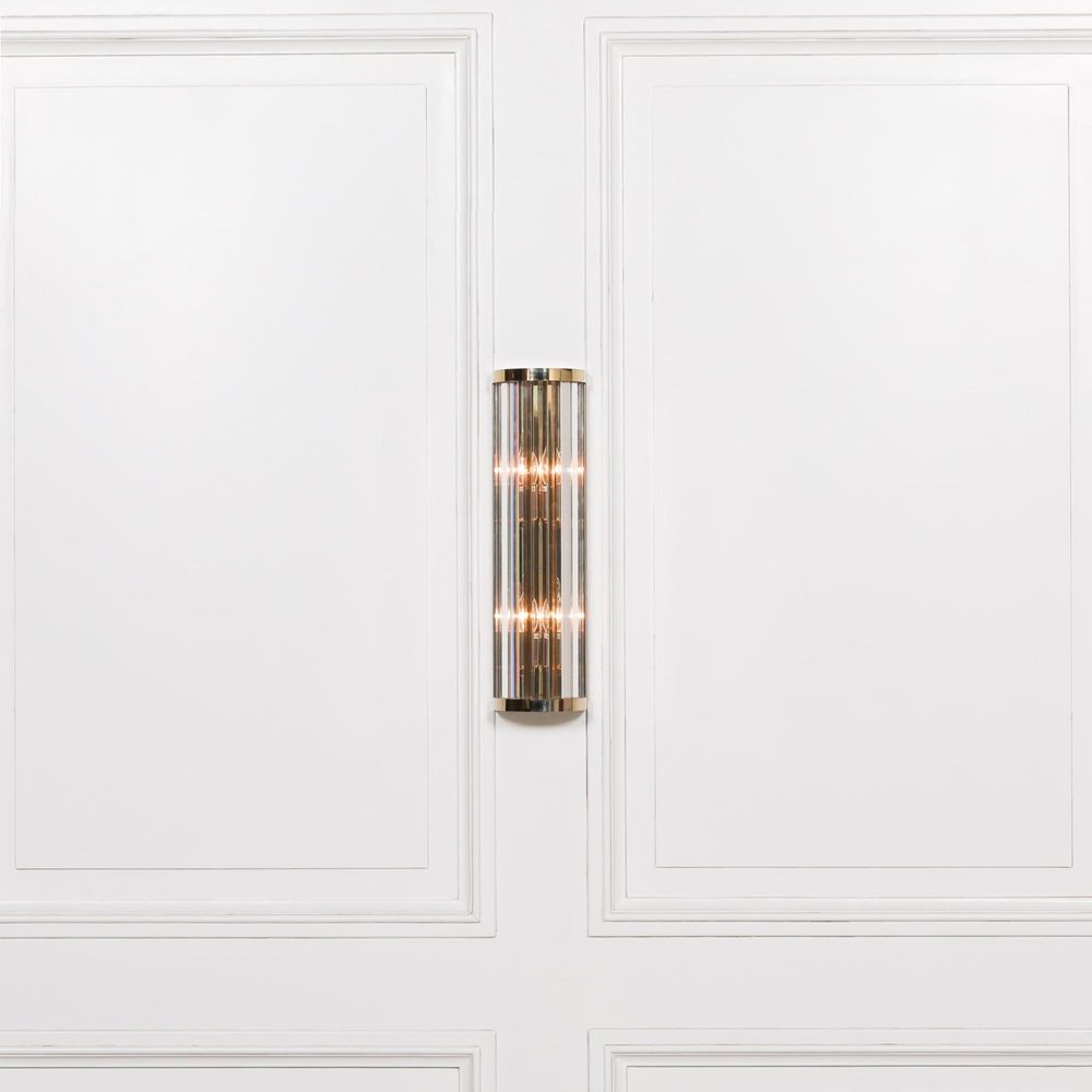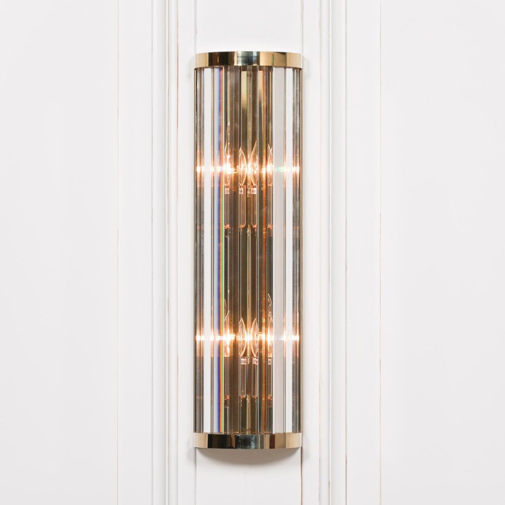Item Code: ADL321 Art Arriba 55cm wall light with a gold metal frame and vertical clear glass rods.