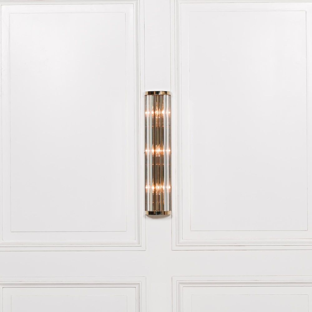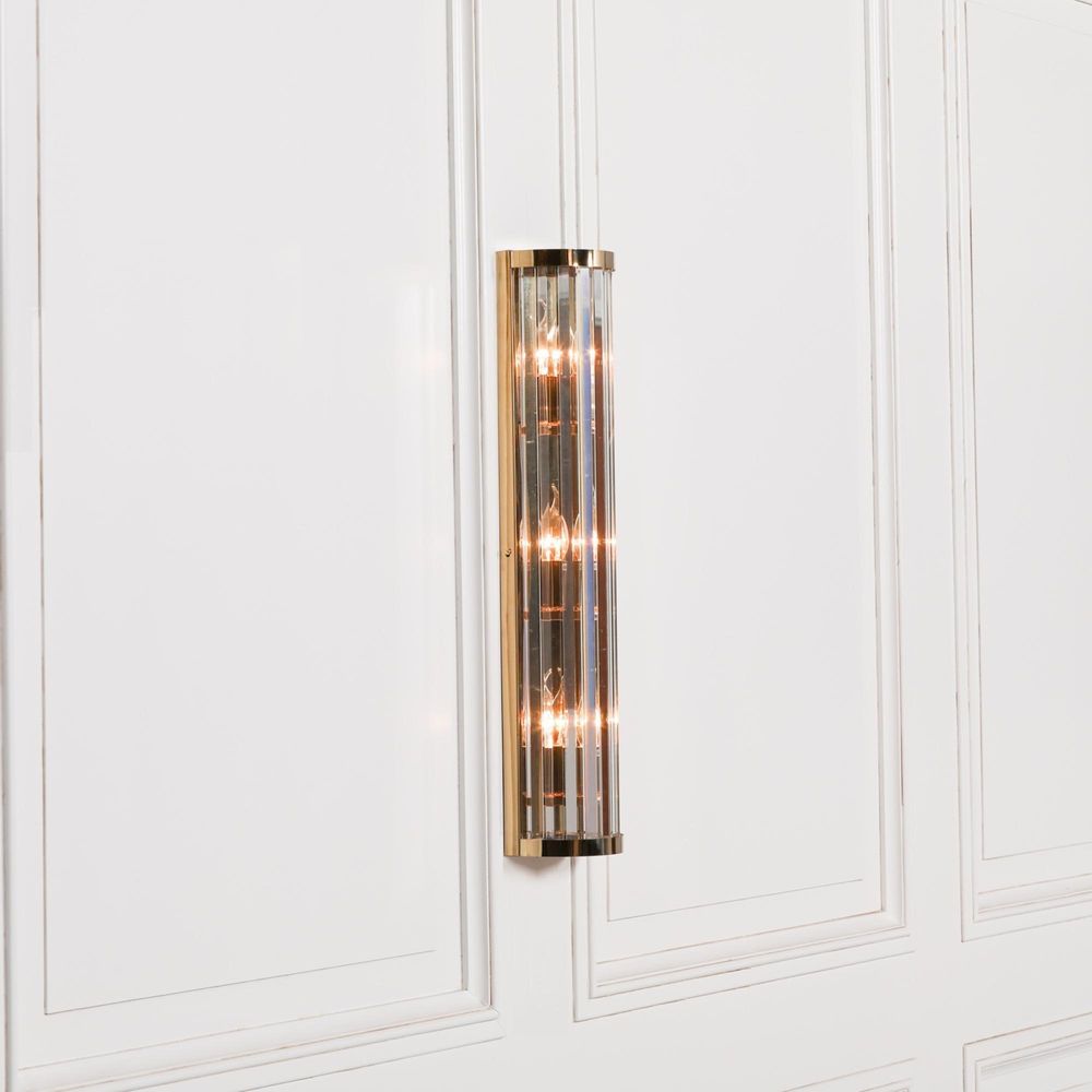 Item Code: ADL322 Art Arriba 71cm wall light with a gold metal frame and vertical clear glass rods.