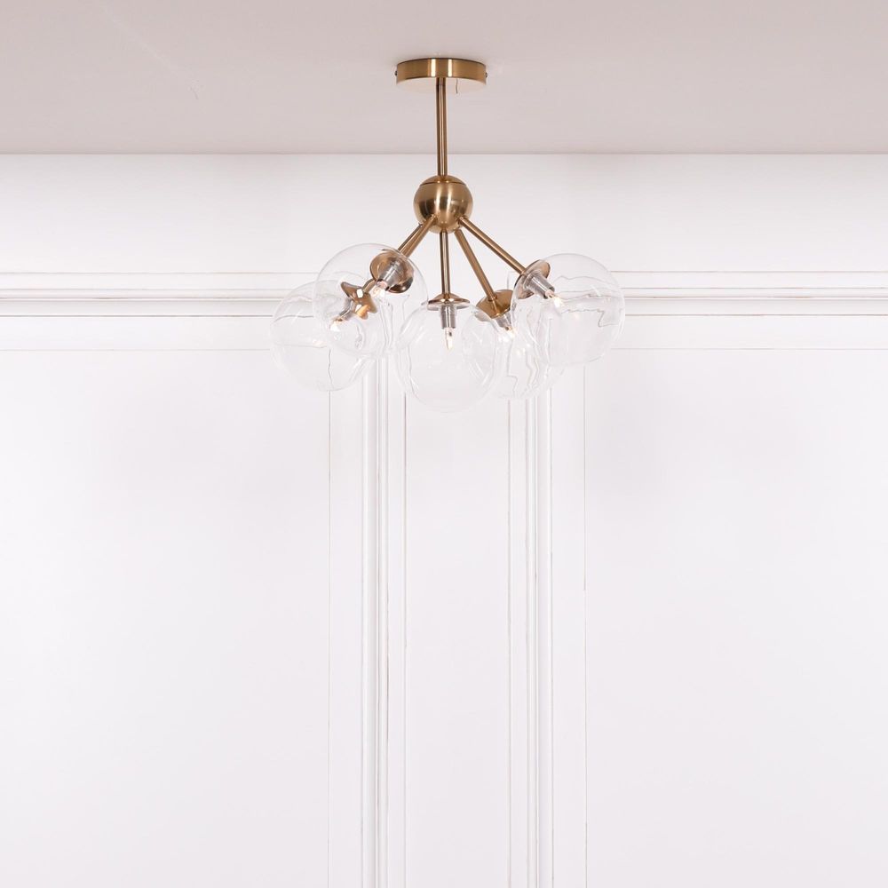 Item Code: IDL769 Art Arriba five-arm sputnik style ceiling light with exposed glass balls and a gold satin finish.