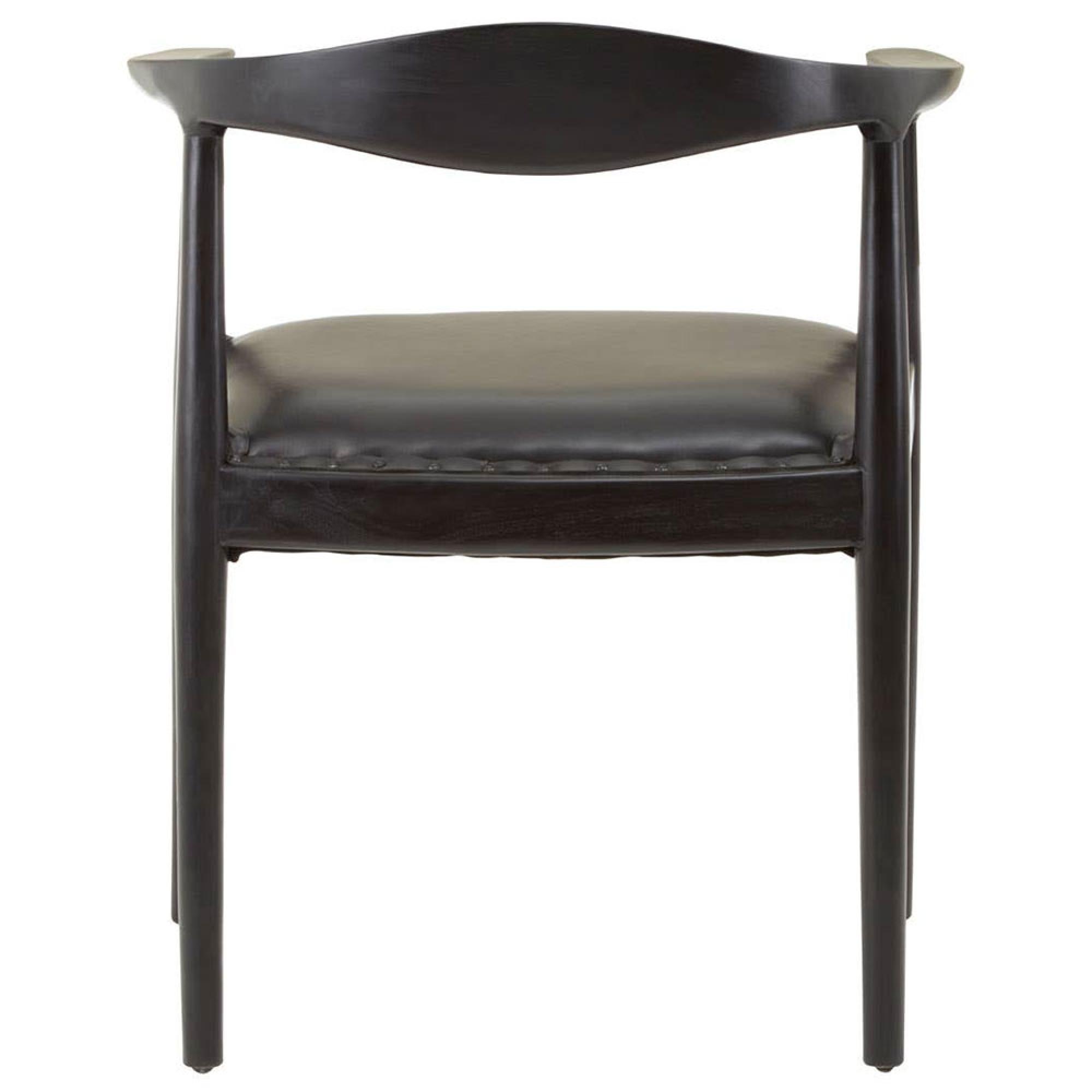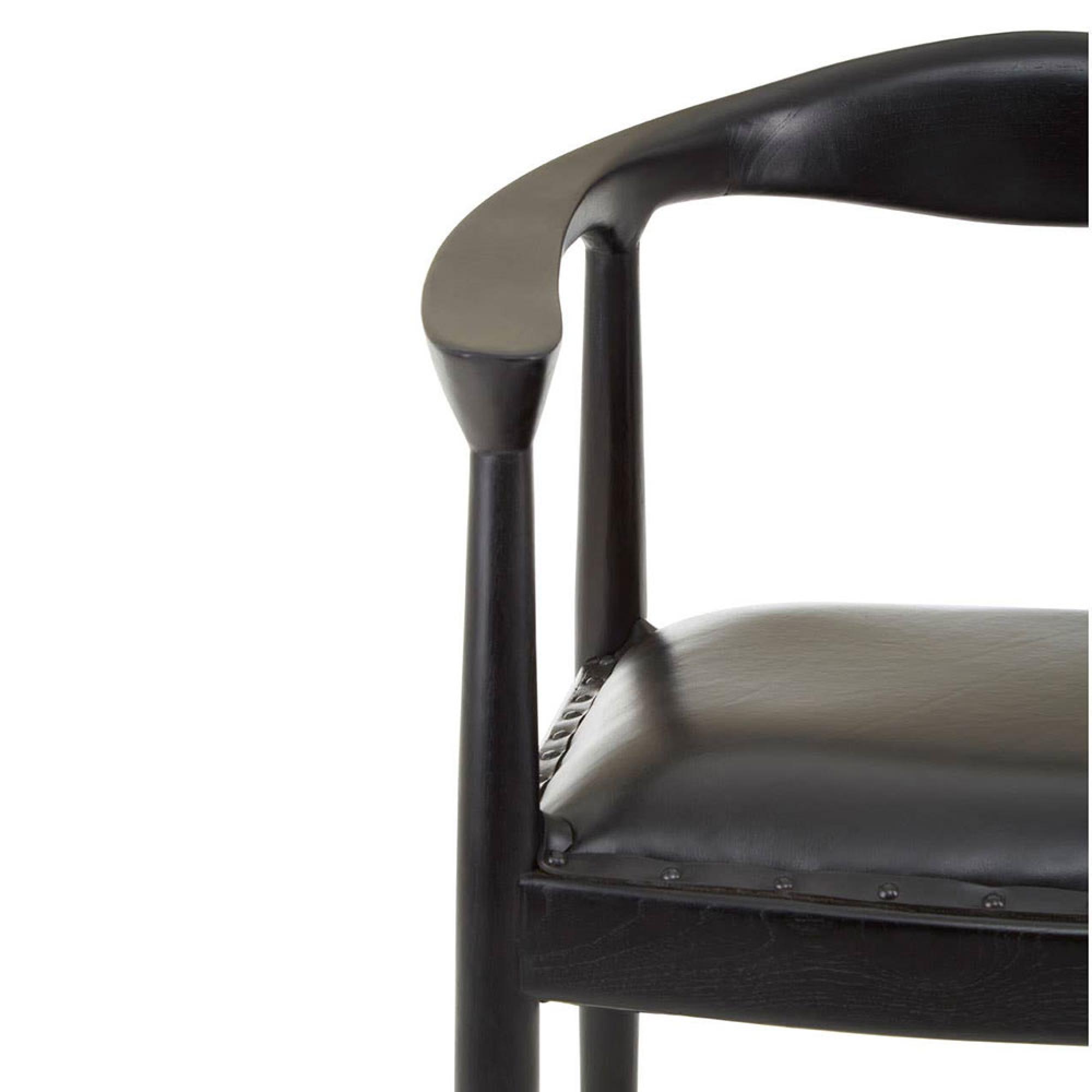 Kendari Black Leather and Teak Wood Curved Back Armchair