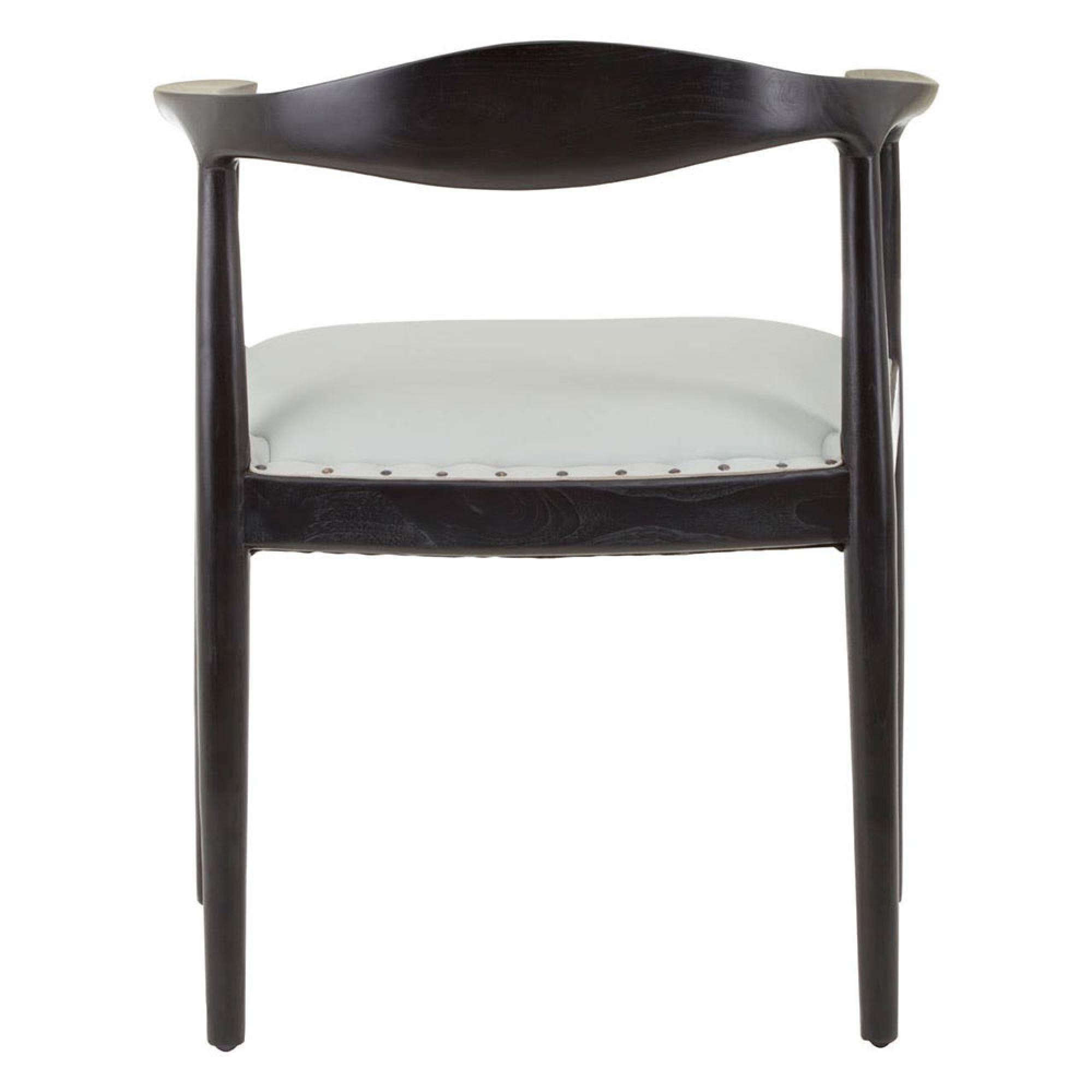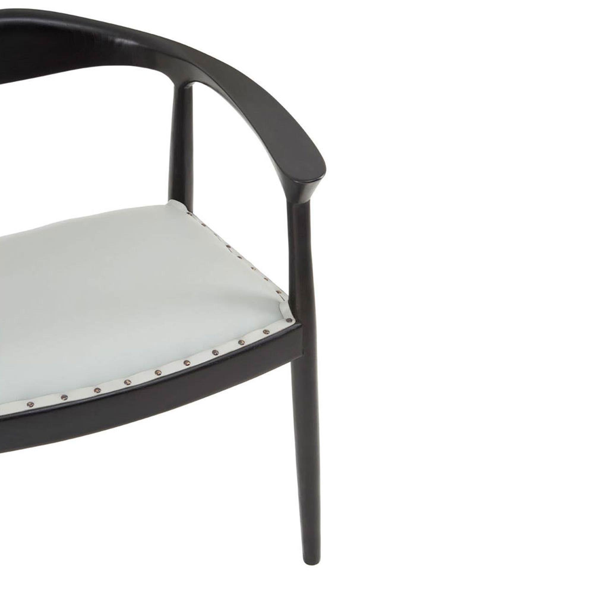 Item Code: 5527097 The Kendari has a sleek design combining black genuine leather and a matching black teak wood frame, elevating any living space with its timeless charm.The Kendari grey real leather chair is skilfully crafted from teak wood, creating an understated look while the curved backrest and armrests add to its poised aesthetic. The seat of this chair is foam padded and the stud detail trim introduces a metallic accent.