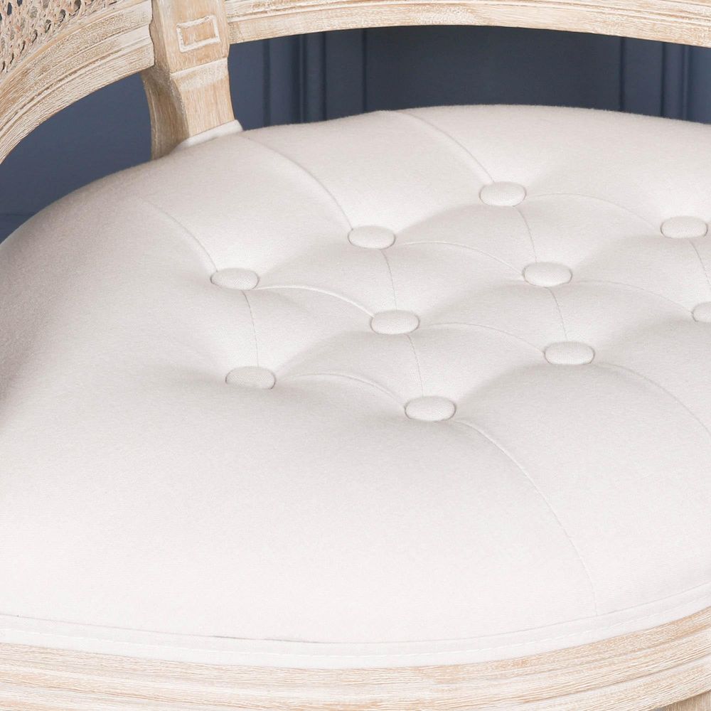 Item Code: WDC887 Wooden Louis corner chair in wooden finish with subtle wood washing added to the detail of the frame. Finished with a linen upholstered seat top and arm pads. The chair?s ideal placement is in the corner of living room, study or bedroom. It would also make a good dressing table chair complimenting any classical / french dressing table.