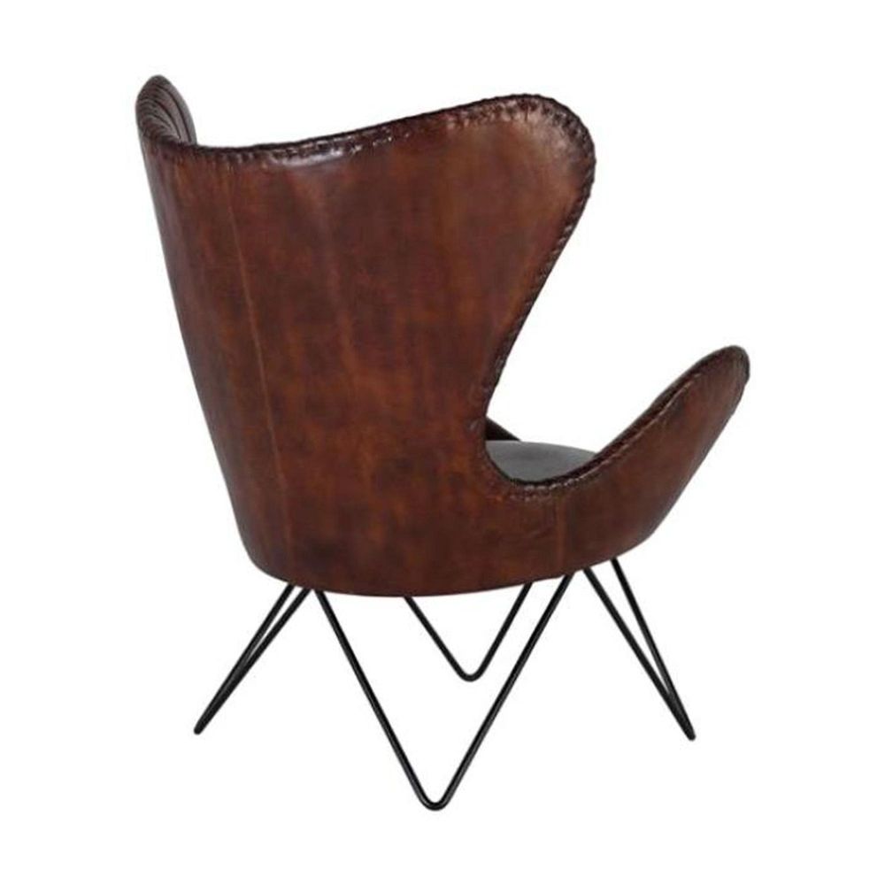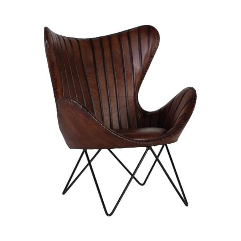 Item Code: 6779 Armchair upholstered in brown leather, with metal structure. Seat height: 44cm. Leg height: 36cm. Armrest height: 28cm. Backrest height: 60cm