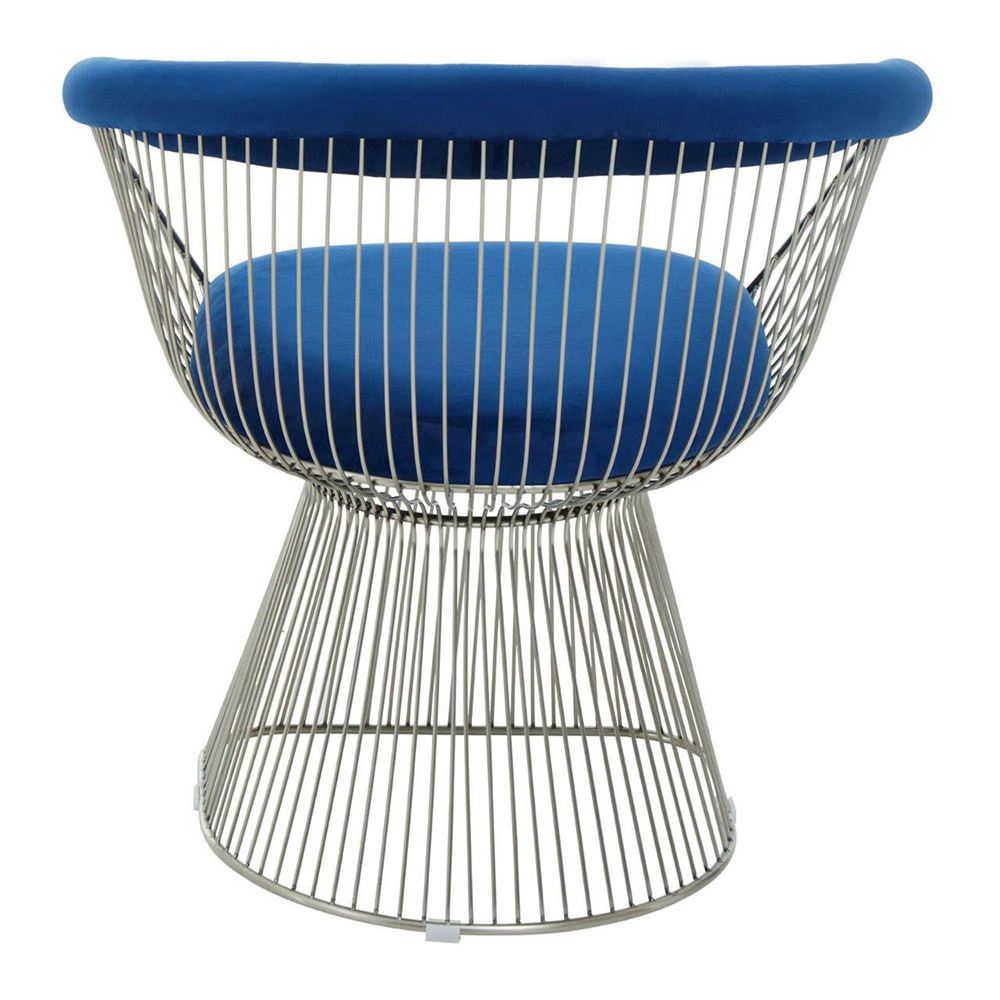 Item Code: 5527699 The Anzio chair has an hourglass brushed silver frame, with a blue velvet top that gives it a luxe accent and complements with modren theme settings.Make a statement with the Anzio chair. An hourglass-shaped silver frame is matched with a decadent navy blue velvet edge at the top and a plush navy blue velvet seat.