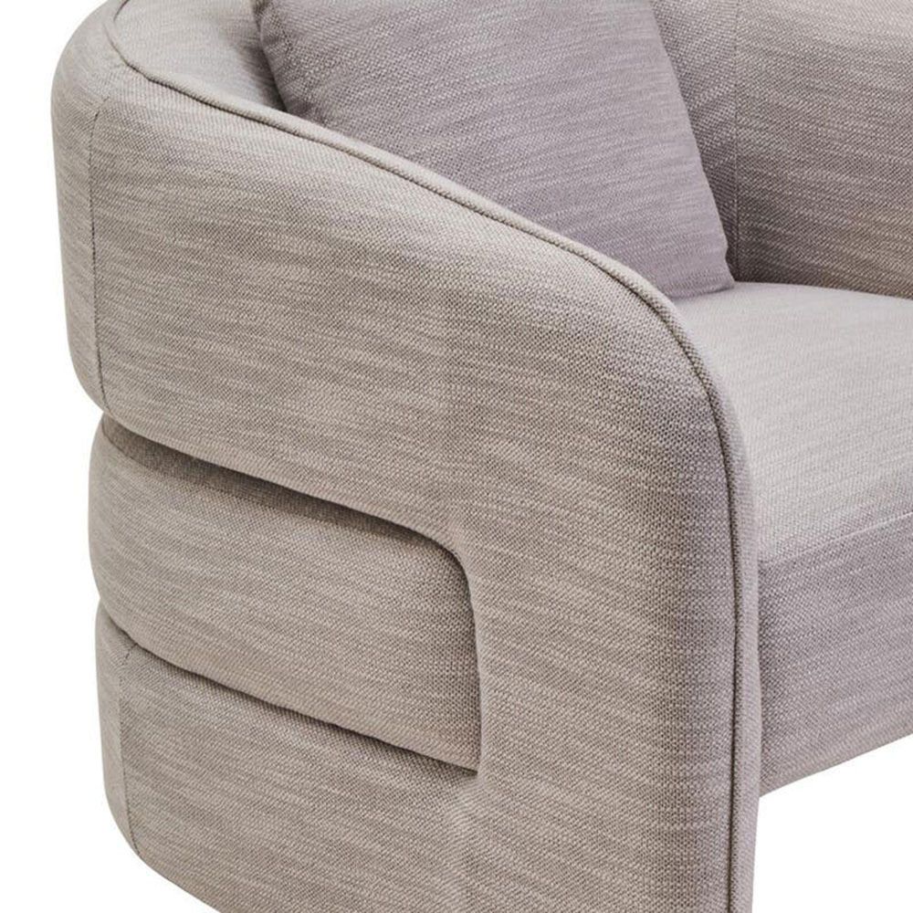Item Code: 5529827 The Bilani chair boasts a combination of a modern curved form, textured grey upholstery, and an eye-catching back design, offering comfortable seating and a chic accent for modern interiors.