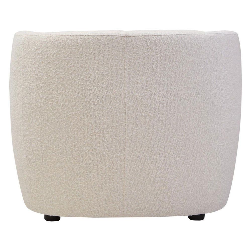 Item Code: 5529824 The Bruge curved back chair features cream finish upholstery with a textured surface and a matching cushion, offering a chic and comfortable seating experience to modern living spaces.