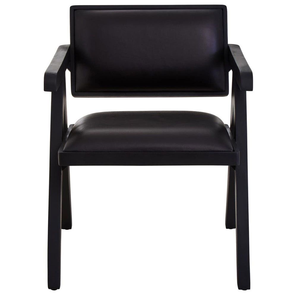 Item Code: 5529642 The Buffalo armchair has a sleek aesthetic with black leather upholstery and an angular black wooden frame. This armchair has a comfortable padded seat and slanted back, upholstered in black leather. The soft black leather seat is supported by a strong angular black wooden frame which creates a modern aesthetic.