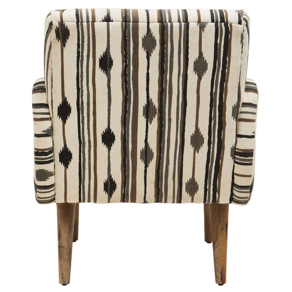 Item Code: 5529519 With two tonal cotton upholstery in monochrome accent, this armchair with deep seat comfort and relaxed recline will provide extra seating for the living room or bedroom.Featuring a deeply padded seat and curvaceous arms, this armchair is upholstered in black and white cotton. Crafted from sustainable mango wood, the pointed legs in natural warmth form an elegant contrast with the cotton weave.