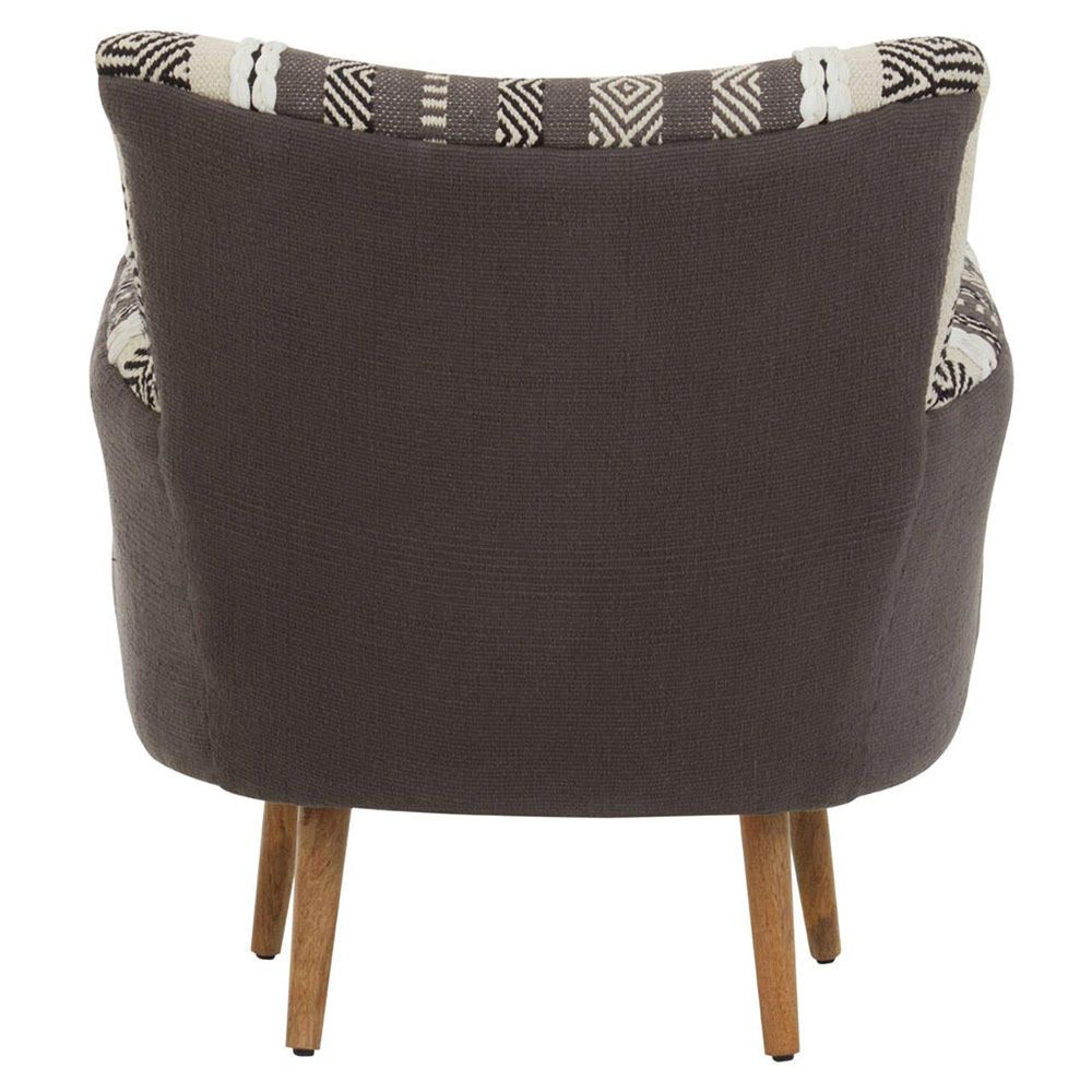 Item Code: 5529585 The Cefena chair uphosltered in a texture rich grey and white pattern fabric is supported by mango wood legs.This chair has a plump seat and comfortable backrest supported by durable mango wood legs. The sumptuously padded chair has a grey and white woven fabric upholstery with textured patterns in neutral tones, making it a statement piece for modern and bohemian interiors.