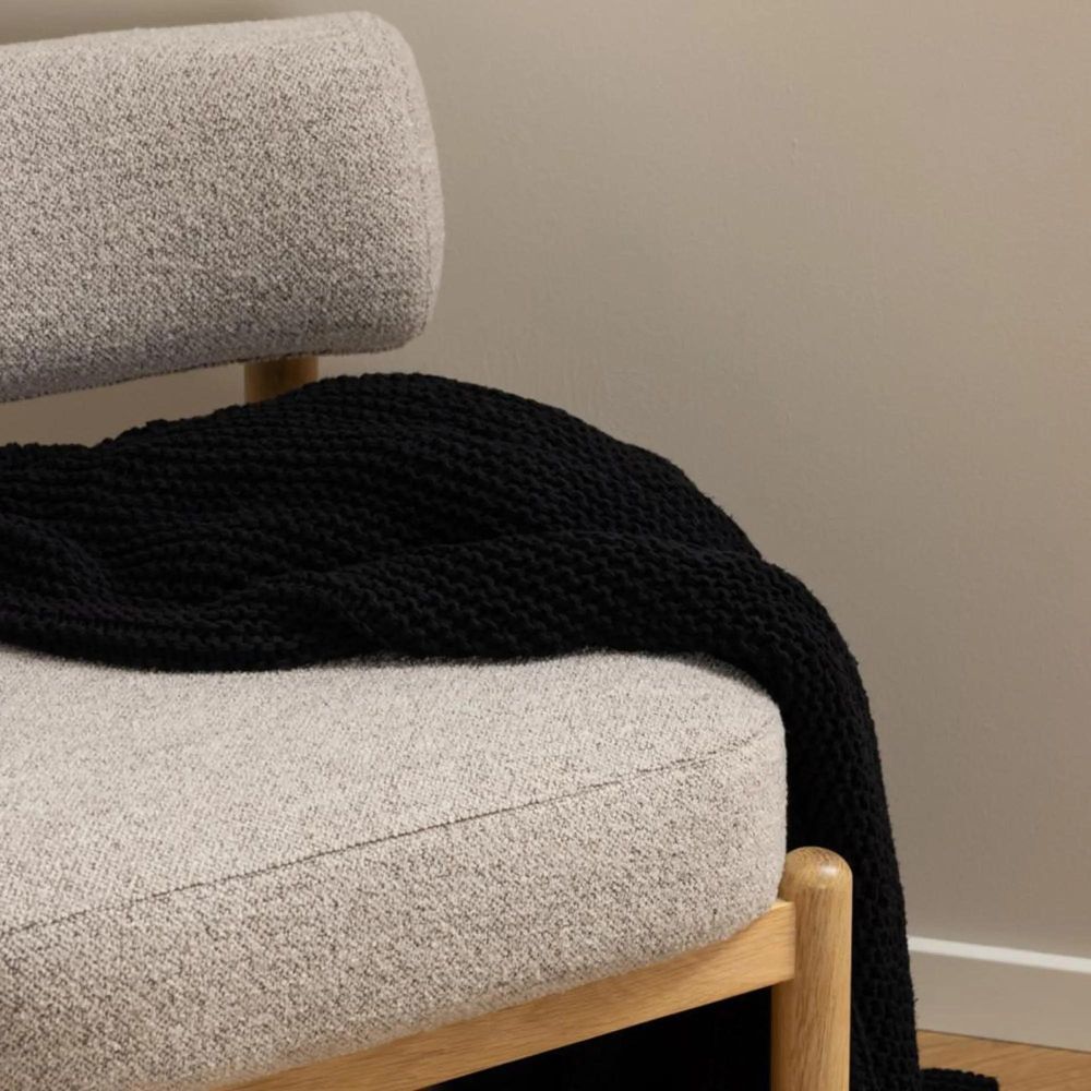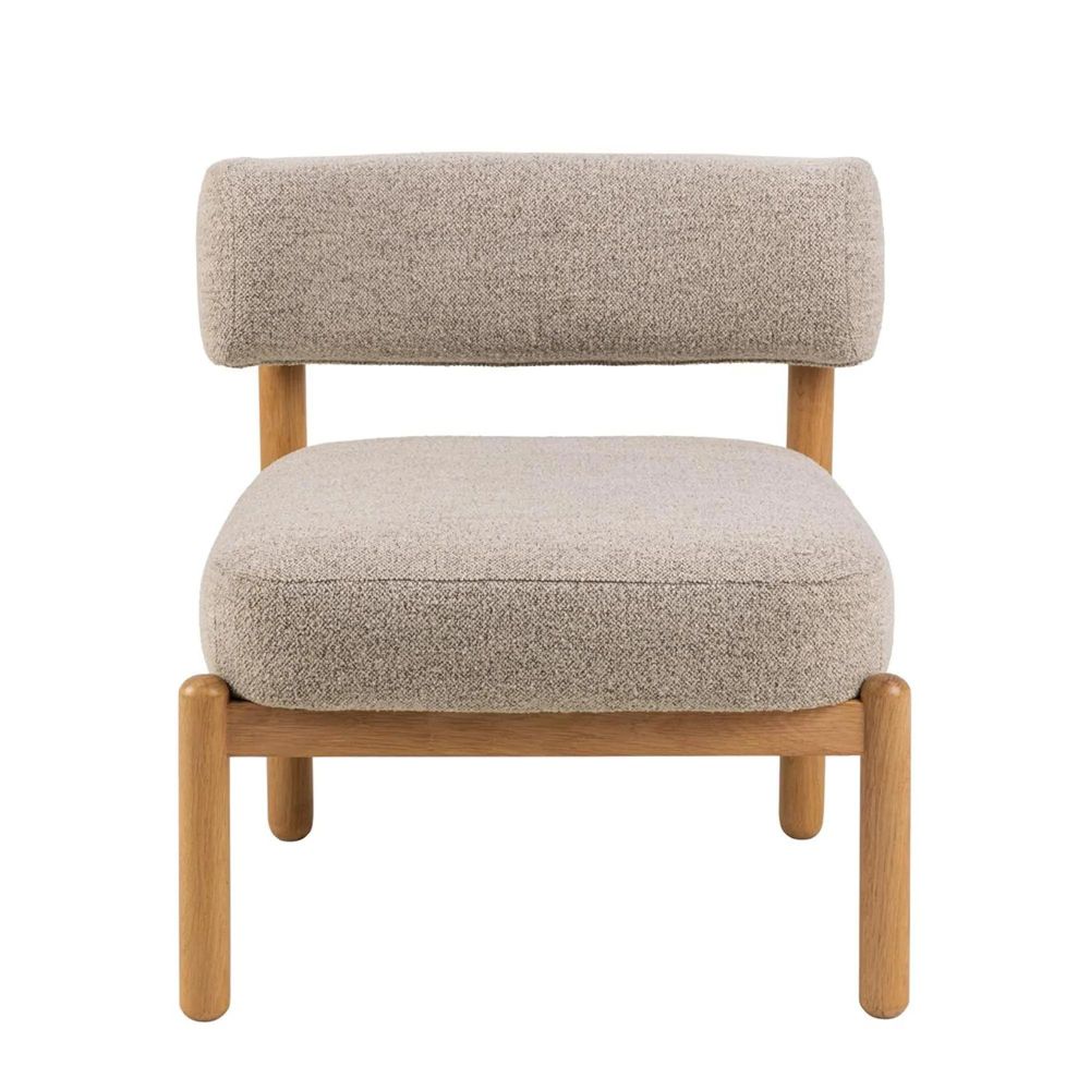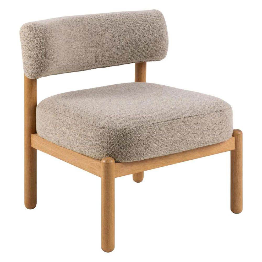 Item Code: 103505 Burley lounge chair, Monza fabric beige 60 FR, base NC lacquered oak with pocket springs. Crafted to evoke a modern Nordic feel in your home, this lounge chair offers aesthetics and comfort. Made from sturdy, rounded oak, the low-profile lacquered frame is complemented by pocket springs, providing enhanced comfort. Together with the beige boucle upholstery, it presents a modern seating solution suited for contemporary homes.Free Delivery