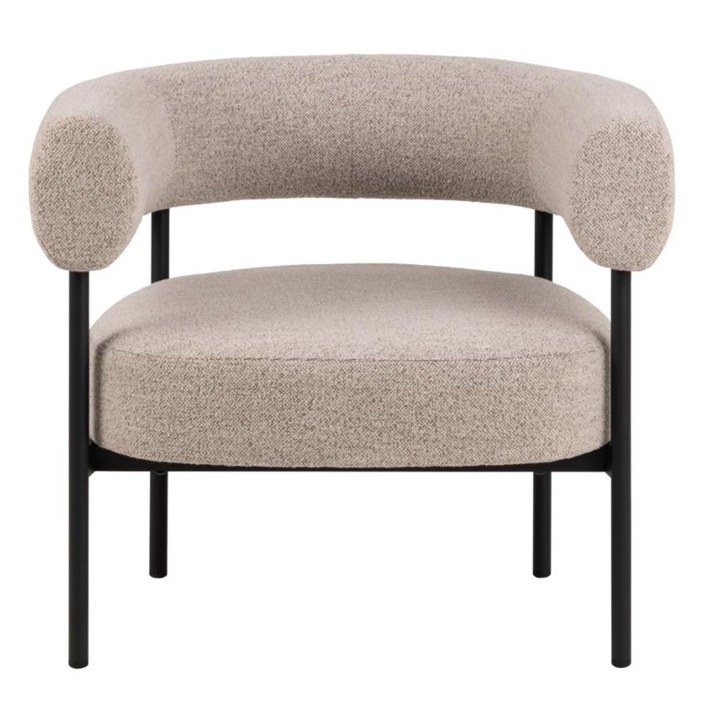 Item Code: 103506 Oakfield lounge chair w/armrest, Monza fabric beige 60 FR, base matt black rough powder coated steel with pocket springs. Presenting a lounge chair that meets the demands of comfort and style. The robust proportions, courtesy of the rounded back and seat padding in a beige structured cover, make the chair look cosier. Designed with pocket springs, the chair offers a great seating experience. The slim frame made of black steel complements the seat, creating a design full of contrast and excitement. Made of fire resistant materials. FSC certified.Free Delivery