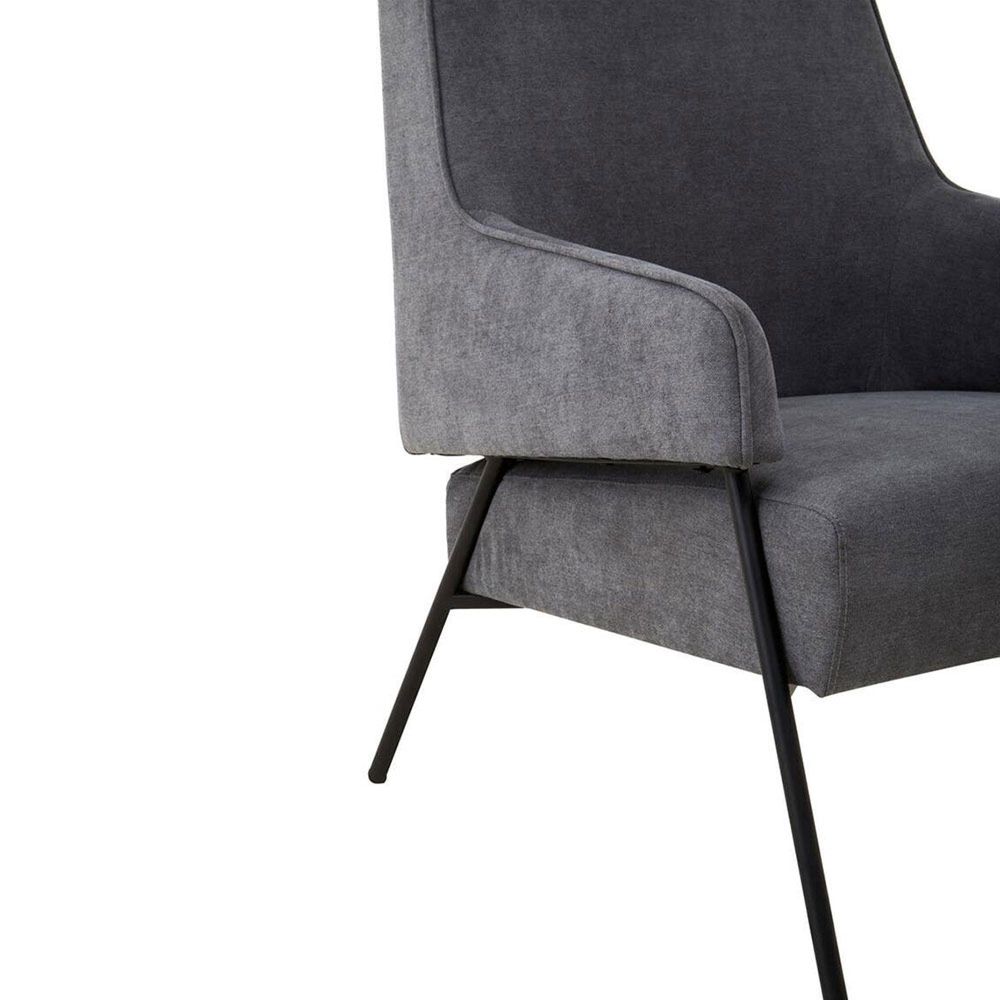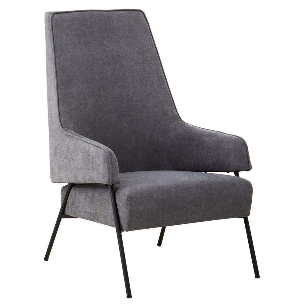 Item Code: 5528677 The Henia modern armchair features a sleek high back with ash velvet upholstery, perfect for adding comfort to contemporary interiors.This sophisticated armchair combines contemporary elegance with comfort. Upholstered in rich ash velvet, it features a tall backrest and gently contoured arms for support. Set on minimalist black metal legs, it?s a stylish and versatile addition to any modern living space.