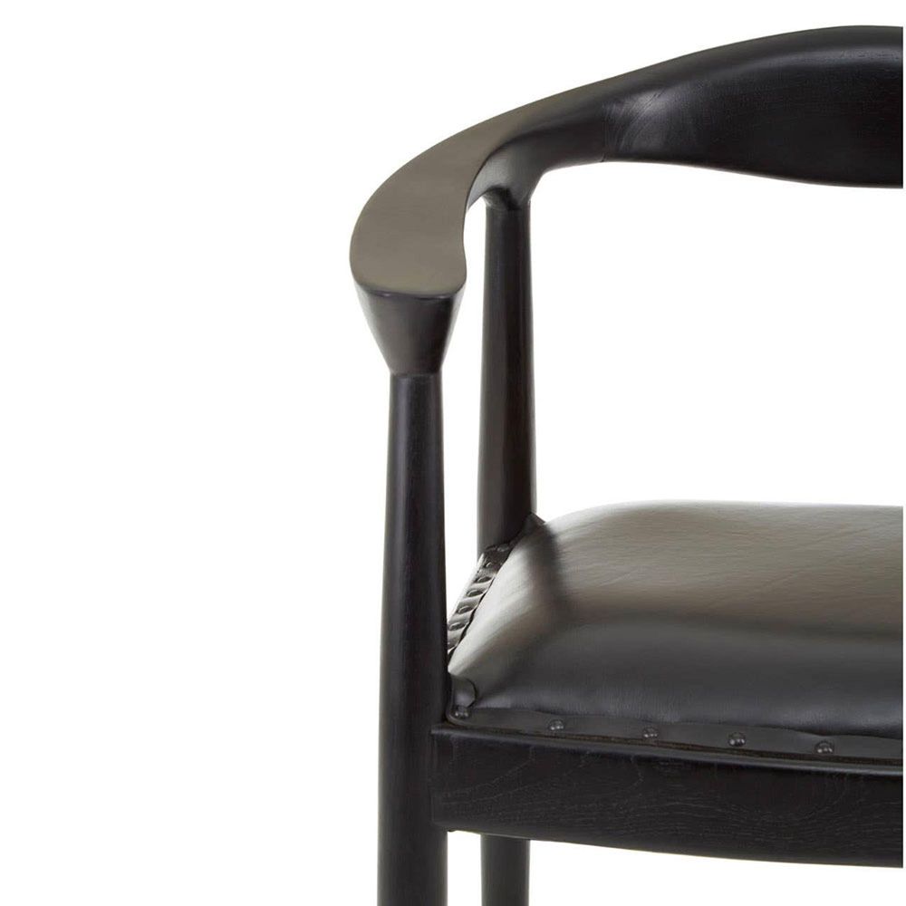Kendari Armchair - Curved Back - Black Leather with Teak Wood