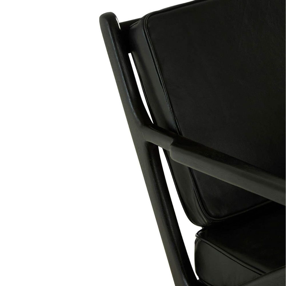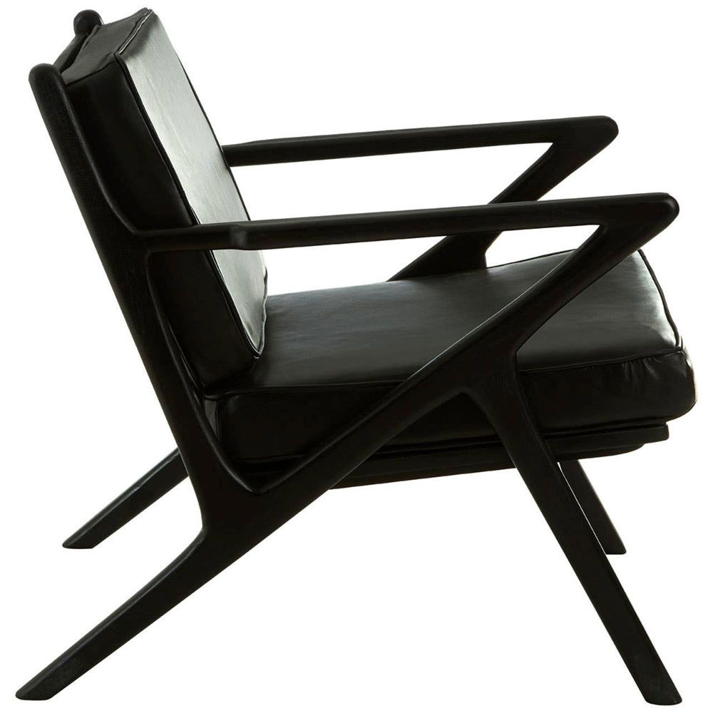 Item Code: 5527117 The Kendari chair has black leather upholstery with a sturdy Z-shaped black teak wood frame, creating a timeless angular aesthetic.This chair has a solid angular teak wood frame in a black finish, creating a nod to mid-century modern design. Its sleek black panelled lines and padded leather upholstery make it the perfect blend of functionality and beauty.
