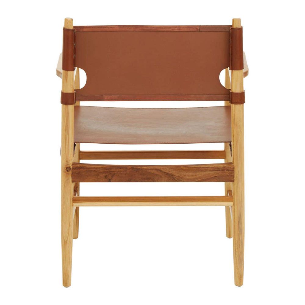 Item Code: 5528408 Minimal yet practical, this leather chair channels a vintage charm to the living area.The frame of this chair is handcrafted expertly from teak wood, and the natural tonal variation will lend a rustic charm to the area. The clean-lined frame of this chair is wrapped with antique brown cow leather to ensure a relaxed sitting experience.
