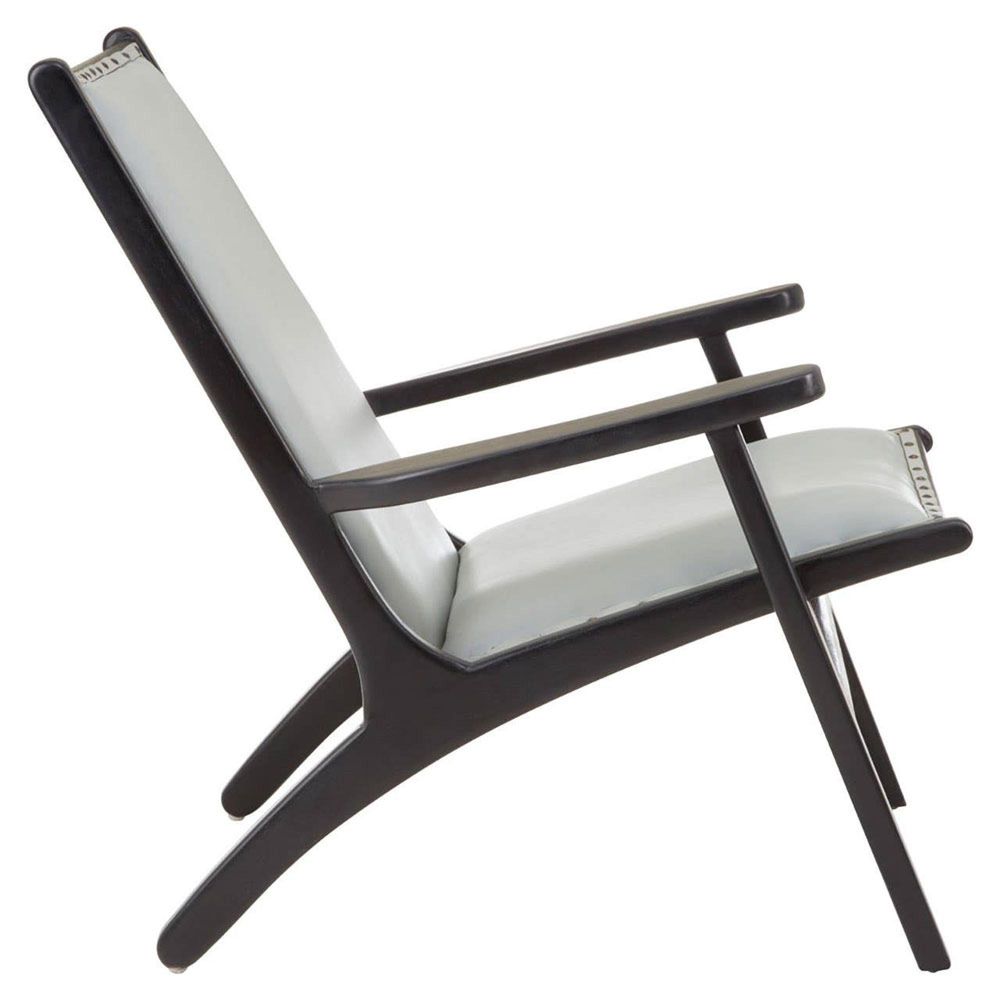 Kendari Lounge Chair - Grey Leather with Teak Wood