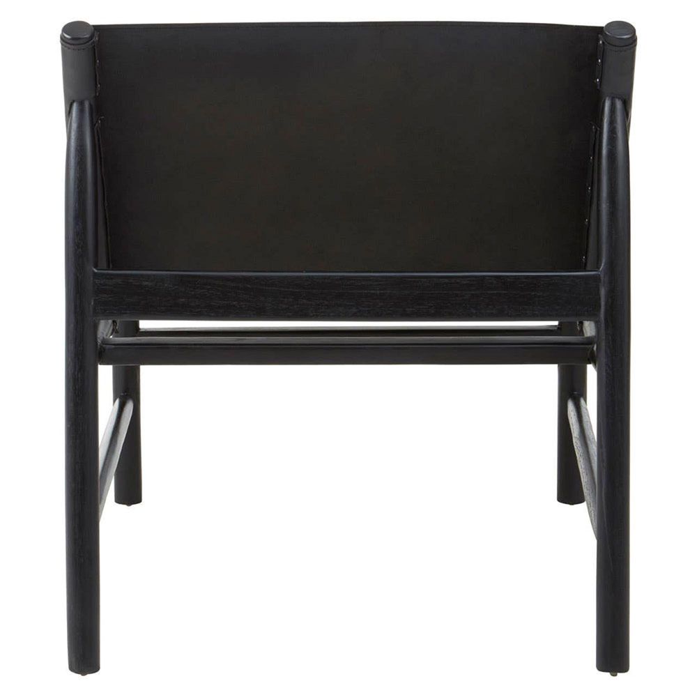 Item Code: 5527120 This black leather upholstery features a sturdy Z-shaped frame crafted from black solid wood, the upholstered seat makes this chair an excellent choice.Kendari black leather chair is soft in texture with black teak wood frame features a sturdy construction supported by curved legs which provide support, whilst adding style to your home this is an irresistible addition to your living space.