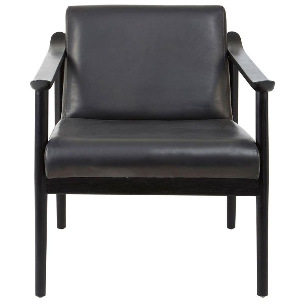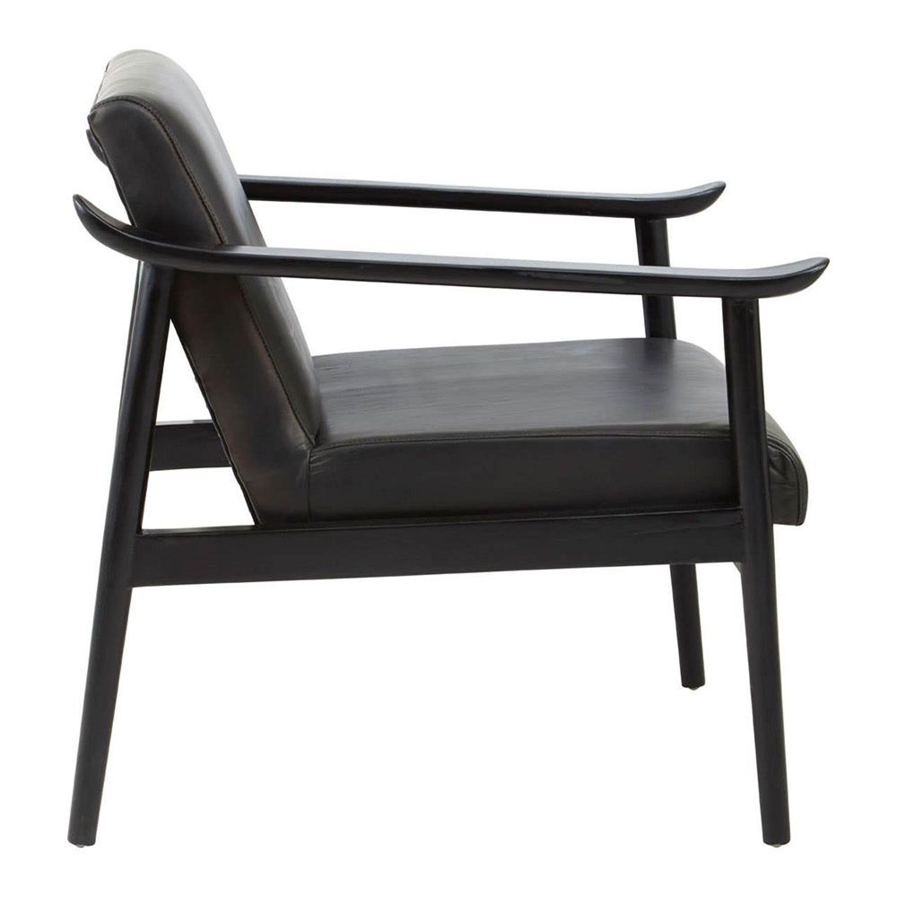 Item Code: 5527123 The Kendari black leather lounge chair offers comfort whilst adding style with an irresistible addition to any living space.The Kendari black leather chair offers a timeless allure to the interior, this lounge chair features a foam-padded seat with a natural teak wood frame in sleek black ensures stability and a comfortable seating experience whilst adding style to your home.
