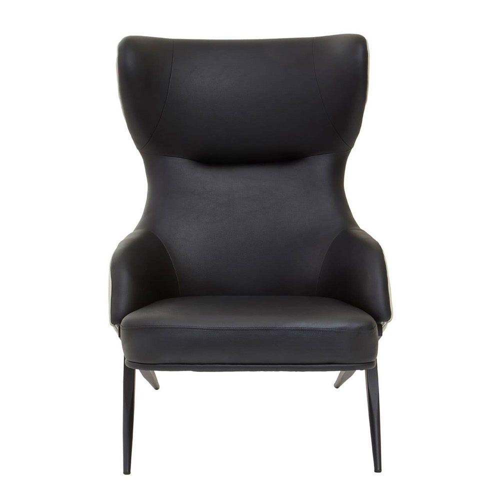 Item Code: 5528237 This mid-century accent chair with a winged back complements the contemporary aaesthetics of the living area.The Kiev wingback chair features a curved backseat and armrests with a padded seat. The black seat of this armchair is supported by tapered legs made from sturdy metal in black finish.