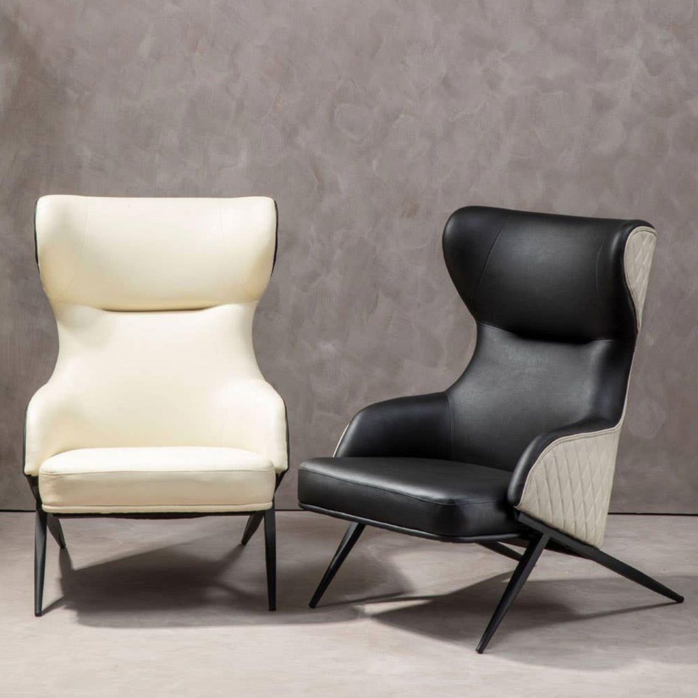 Kiev Armchair - Wing Back - Black Fabric and Beige Faux Leather