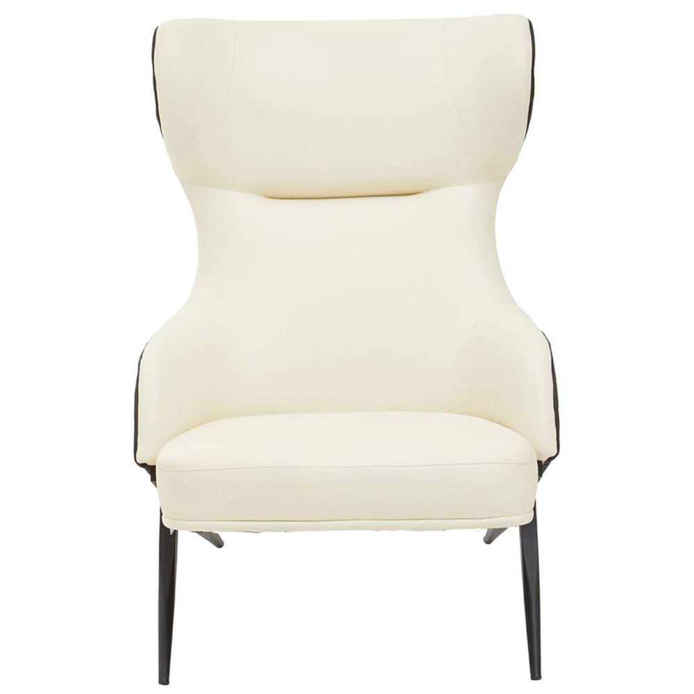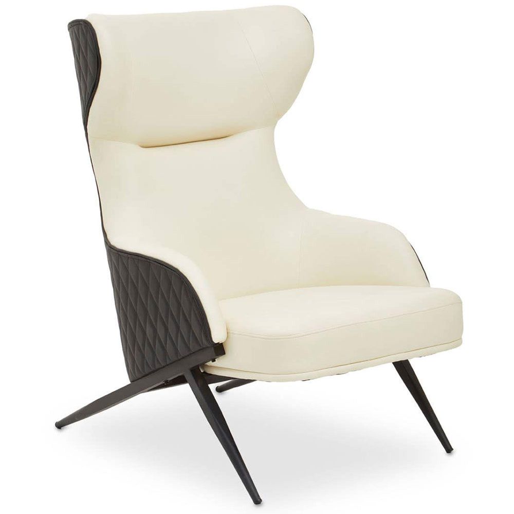 Kiev Armchair - Wing Back - Ivory Fabric and Black Faux Leather