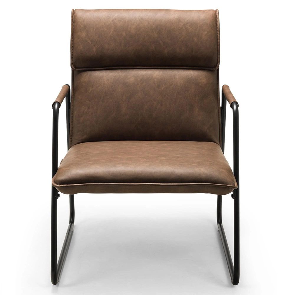 Item Code: GRA401 Inspired by a modern, industrial styling, the Gramercy chair is upholstered in a soft faux leather fabric finished in a brown colourway. To chair is designed with a sturdy black metal frame, with a comfortable padded headrest to ensure maximum support. The Gramercy Chair is sure to make a dream scenario in any living space.