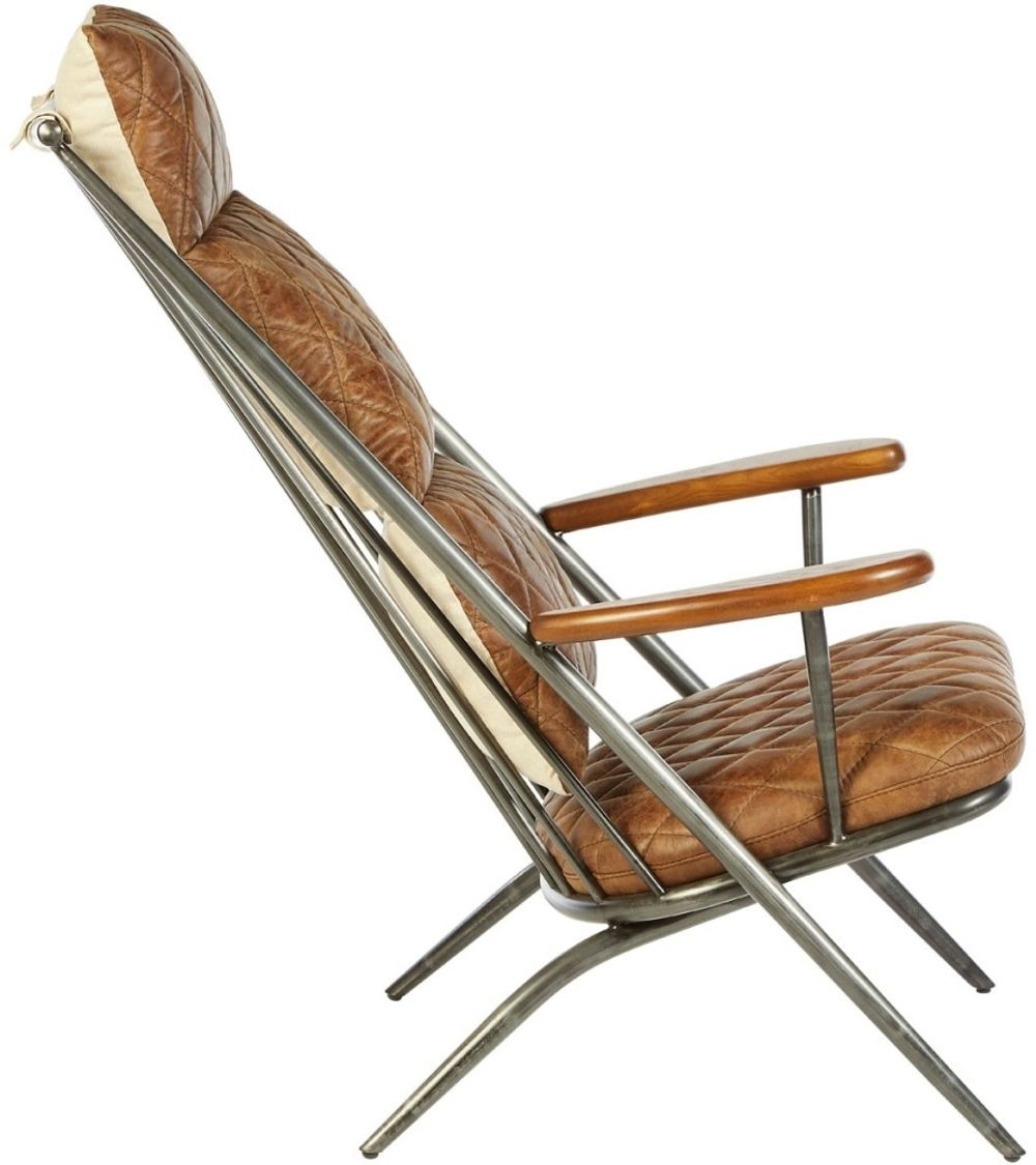 Item Code: 5502207 Distressed genuine light brown leather upholsters the stylish Hoxton chair.The Hoxton chair is created from strong iron with a dark, subtly distressed finish. The slender metallic legs and backrest lend the chair to soft industrial style interiors. Tactile, curved ash wood armrests lend a natural accent to the metal frame and coordinate with the brown tones of the quilted leather upholstery.