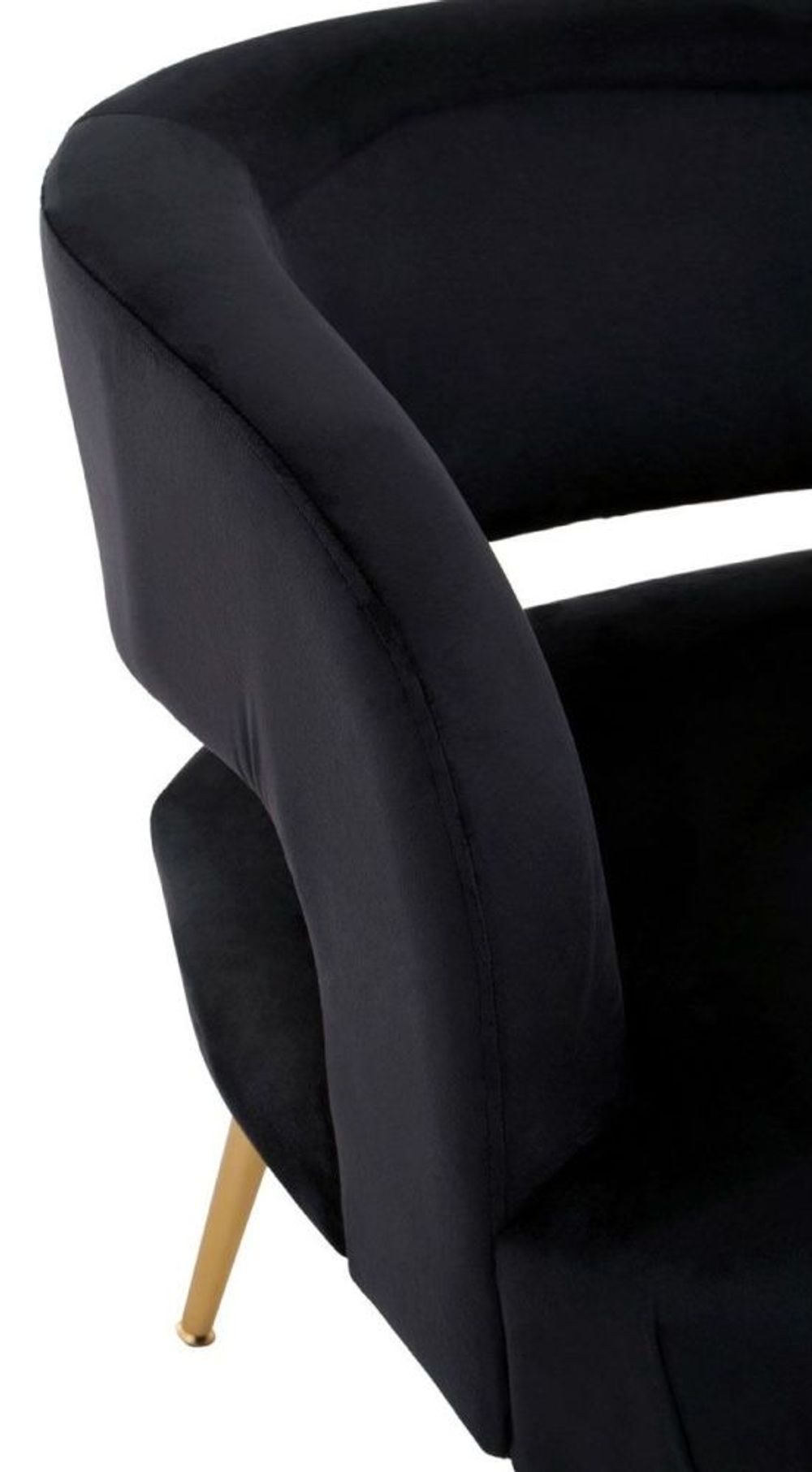 Item Code: 2406338 This foam-padded chair exhibits a cut-out design back and upholstered skilfully in sumptuous black velvet. The U-shaped armrests offer a cosy seating experience, while the slender metal legs in the gold finish create a luxe accent.