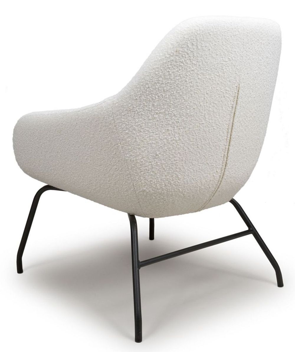 This laid-back designer chair will add a touch of cool sophistication to any décor wherever it is placed. Dressed in a fabulous tactile Boucle fabric in three on-trend colours of Grey, Rust and Ivory all of which stand on slender black metal legs. Simply settle into the comfort that this chair offers and relaxxxx.
