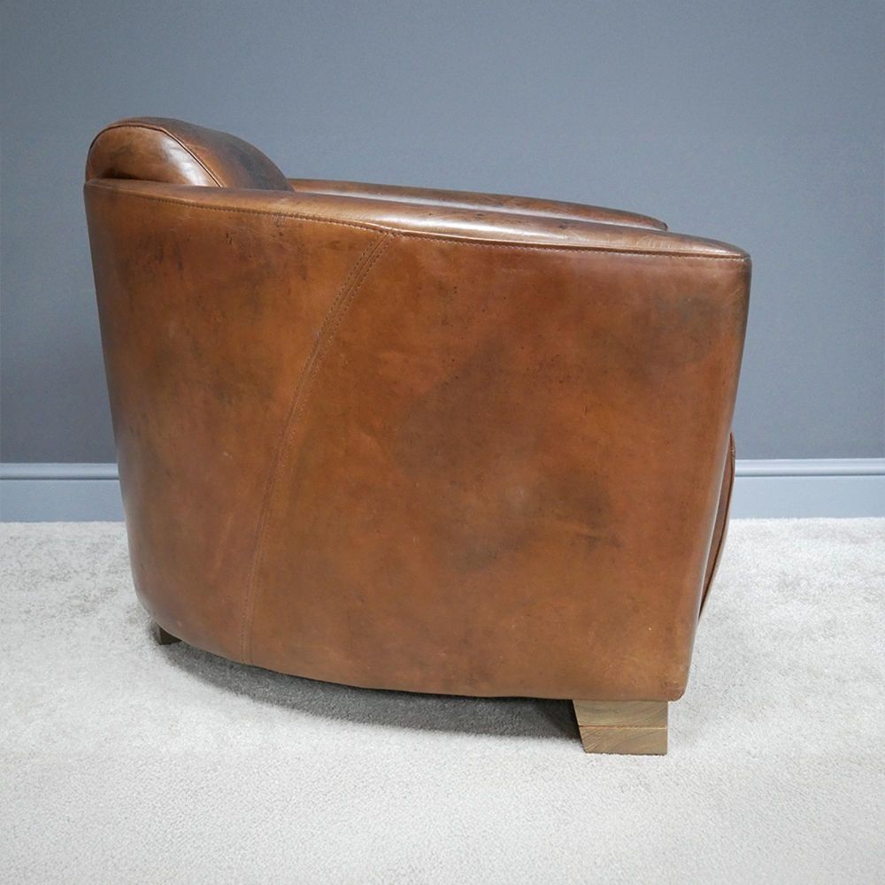 The "Cigar" chair is hand crafted from 100% genuine Brazilian leather, with oak wood feet to finish. Available in classic cognac colour.
