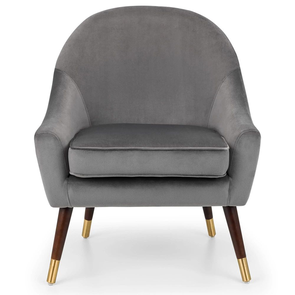 Item Code: ELL301 Our Elliot armchair combines high quality design with luxurious materials. Featuring beautifully curved arms and back upholstered in a chic grey velvet, and oak legs tipped with timeless gold - this piece is likely to make any area look classy and chic, whilst keeping you comfortable.