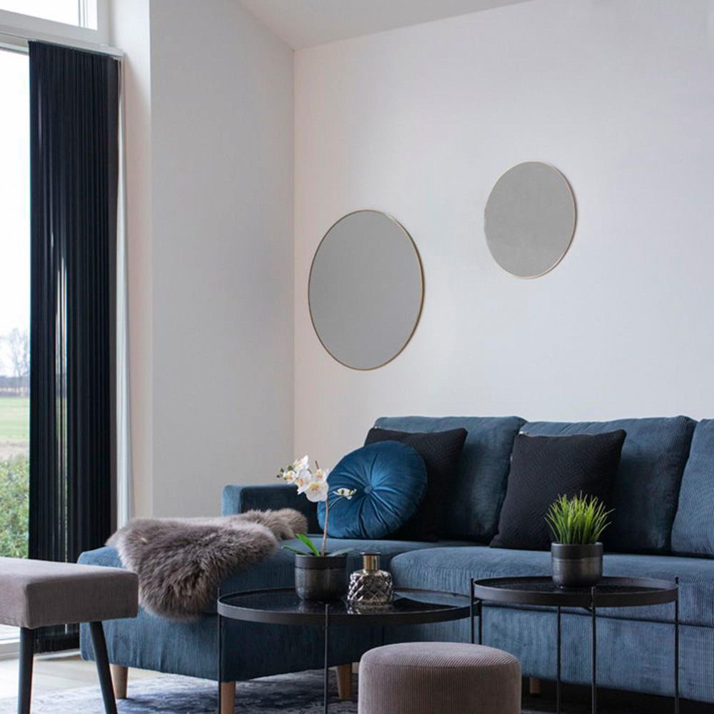Bring refined character and Scandinavian influence into your home with the Jersey Brass Round Wall Mirror. Its slim metal frame, finished in a warm brass tone, adds a soft reflective glow that makes any room feel more open, light, and airy. Thoughtfully designed for modern living, this mirror offers a clean circular form that complements minimal styling while still acting as a striking focal point on the wall.