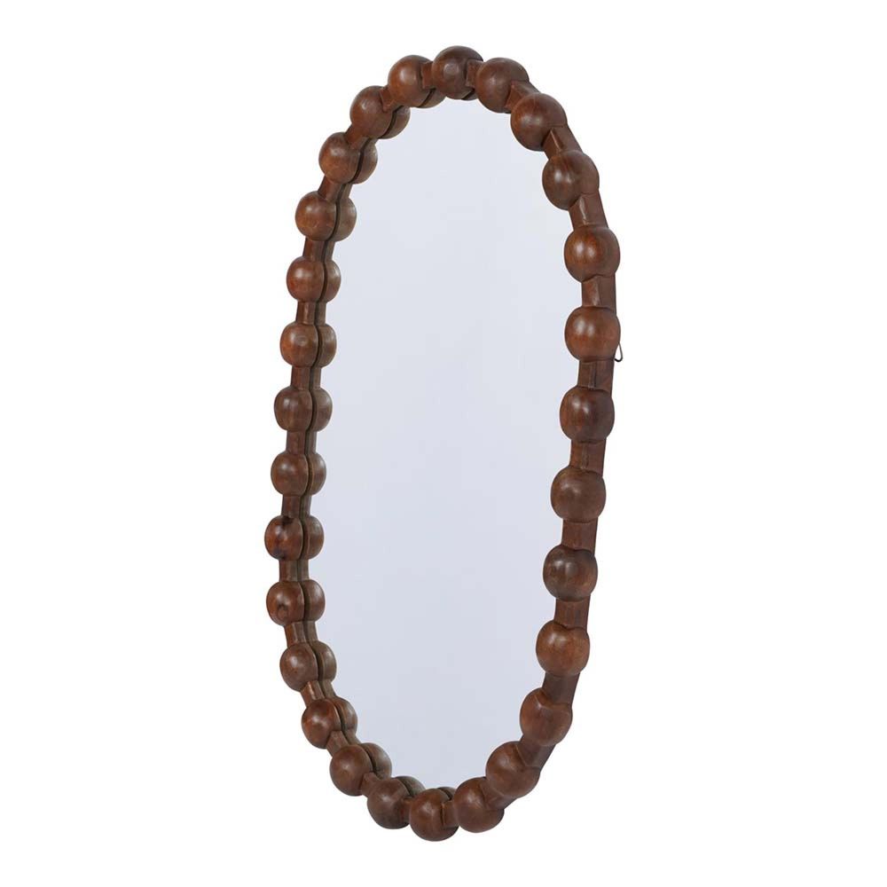 Item Code: 706196 The Carmel Solid Wood Carved Bobble Mirror is a stunning and elegant looking glass in an oval shape. The mirror is framed with intricately carved bobble detailing, adding texture and art deco appeal. The clear glass mirror centrepiece provides a reflective surface that enhances the sense of space and light in your home and it chimes perfectly with our wider Carmel collection. Crafted from solid mango wood with a dark stain finish, it showcases the natural beauty and subtle grain of the wood. Mirror can be hung in portrait elevation only.