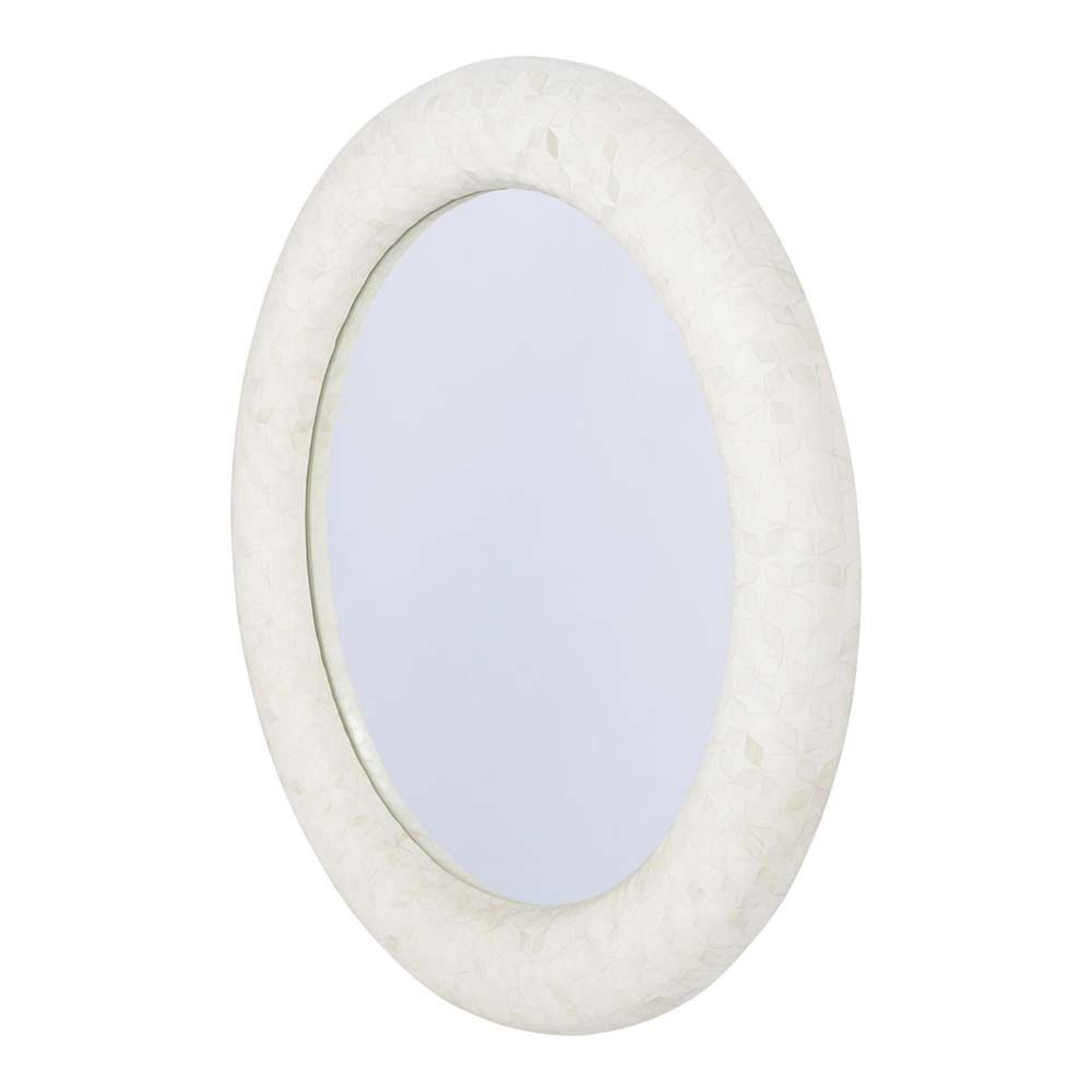 Item Code: 706209 The Aspen Round Mirror is a captivating mirror made in bone to stand alone or sit proudly over our Aspen cabinet. The mirror's sturdy rounded frame is made entirely in beautiful intricate bone inlay, which has a lustrous quality reminiscent of mother of pearl. Perfectly balanced in both form and function, the Aspen Round Mirror brings an air of refinement to any interior. Due to its weight and size, the item should be installed by a professional.