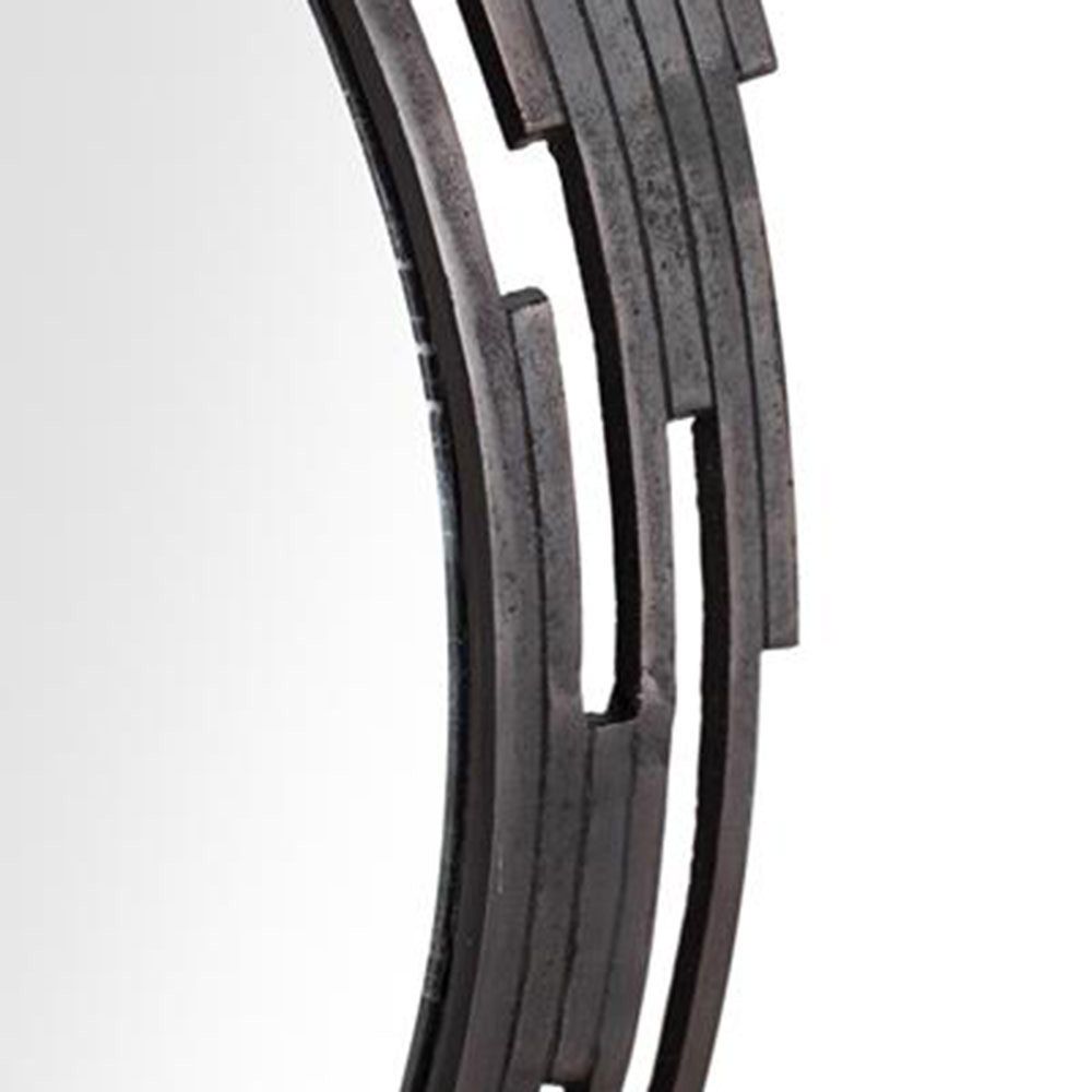 Item Code: 1871 This round mirror with a flat openwork metal frame is a decorative piece of great impact and sophistication. Its frame, made of metal in an aged bronze tone, provides a feeling of antiquity and elegance, while the openwork technique on the edge gives it a unique design.