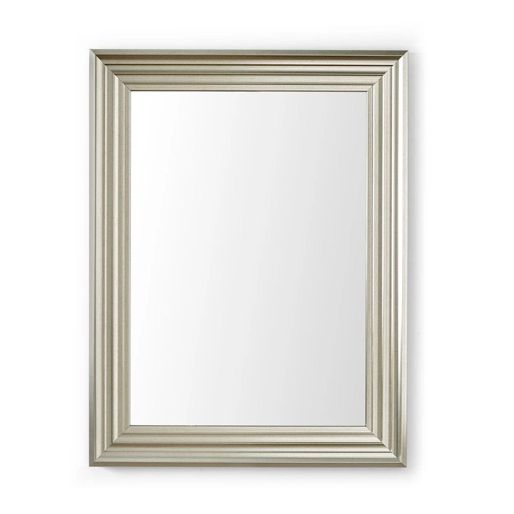 Refresh your space with this sleek rectangular mirror, framed in a soft metallic pewter finish that offers subtle sheen and depth. The bevelled edge detailing adds understated elegance, making it ideal for brightening and expanding the feel of living rooms, hallways, or bedrooms. Whether hung vertically or horizontally, this versatile mirror brings a timeless, refined touch to any space. No assembly required.