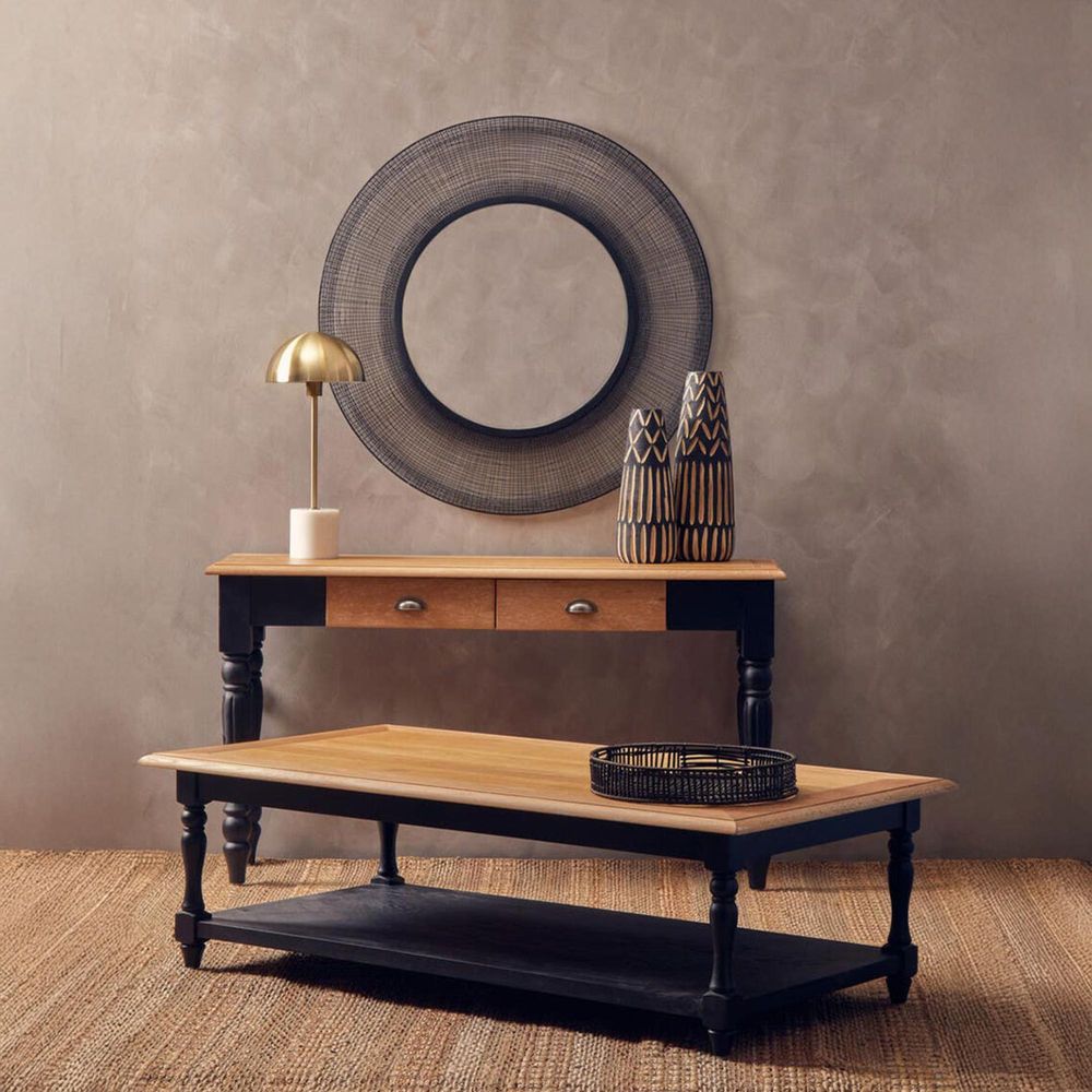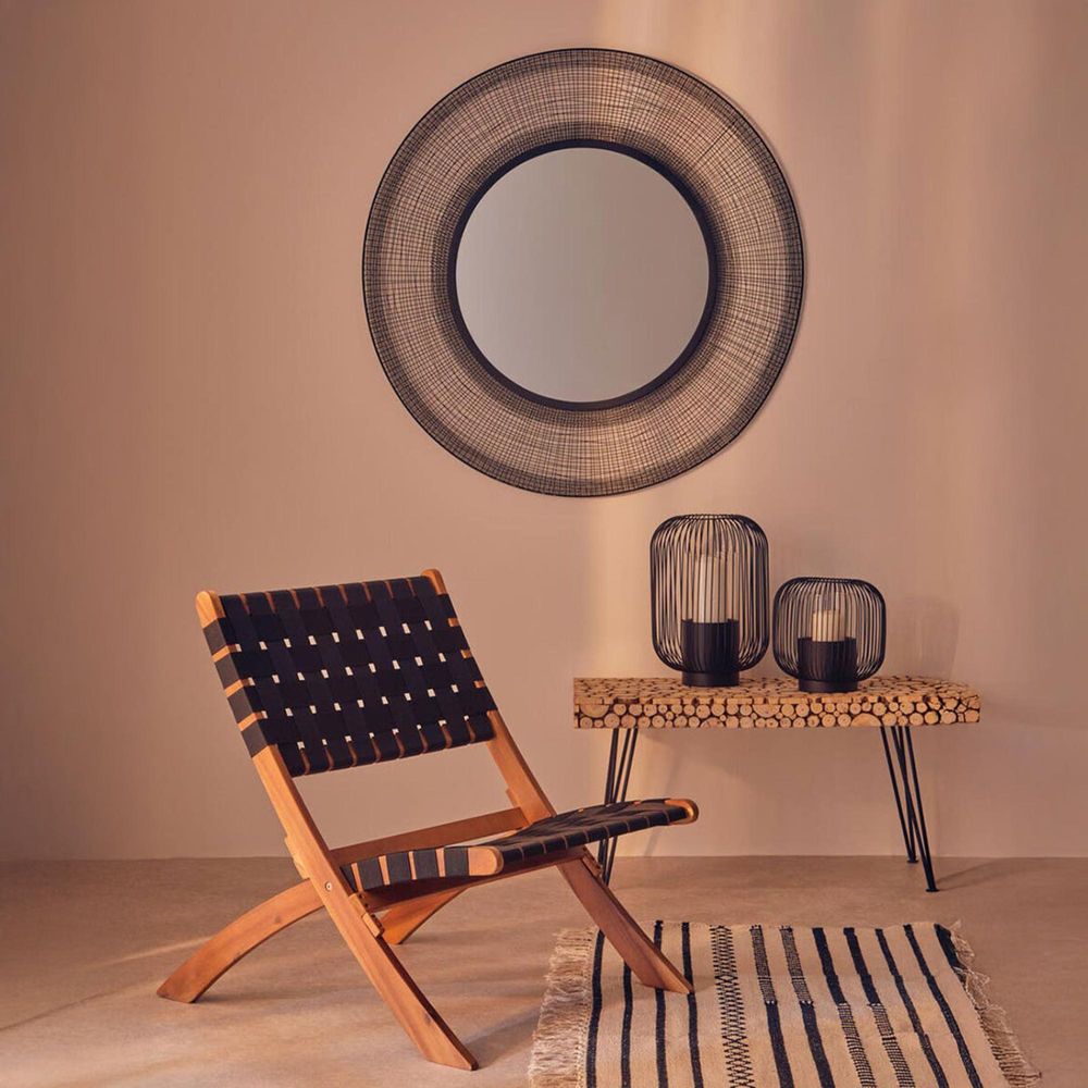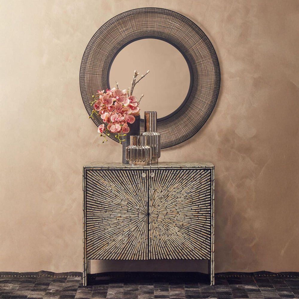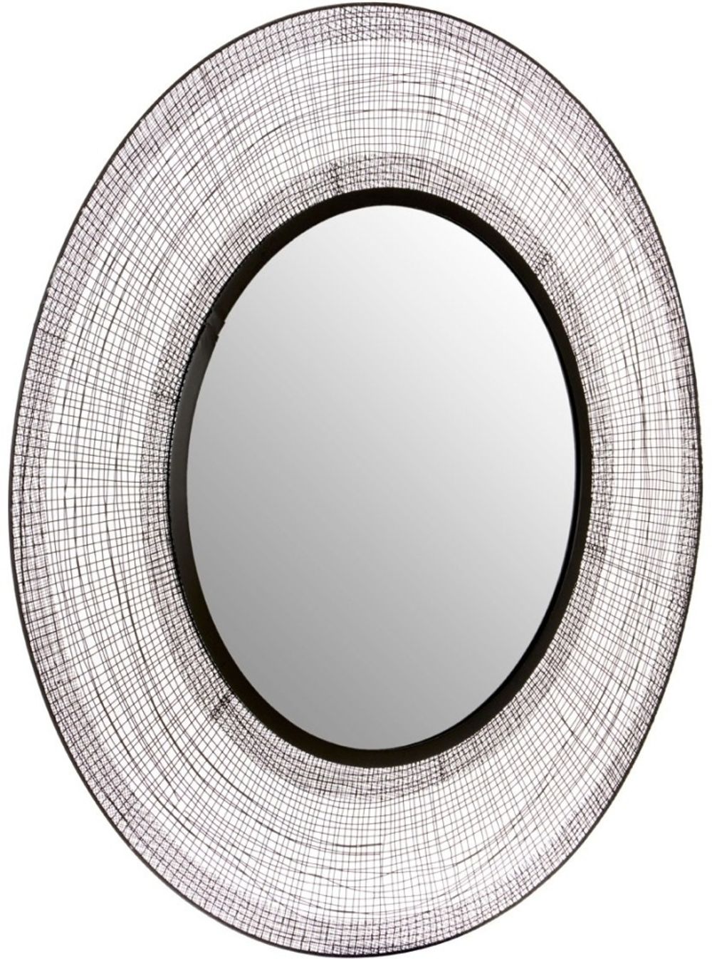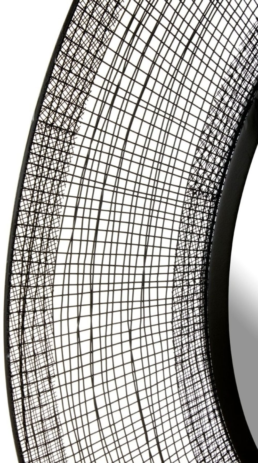 Item Code: 5503269 This wall mirror features a metallic frame with a subtly textured look.The Trento round wall mirror has a crosshatched pattern created from slender, black finish metal wires. It is encased in sleek black metallic rims that give this mirror's frame an elegant finishing touch. The wire mesh stripes around the edges add strength and character to the hand-woven construction.