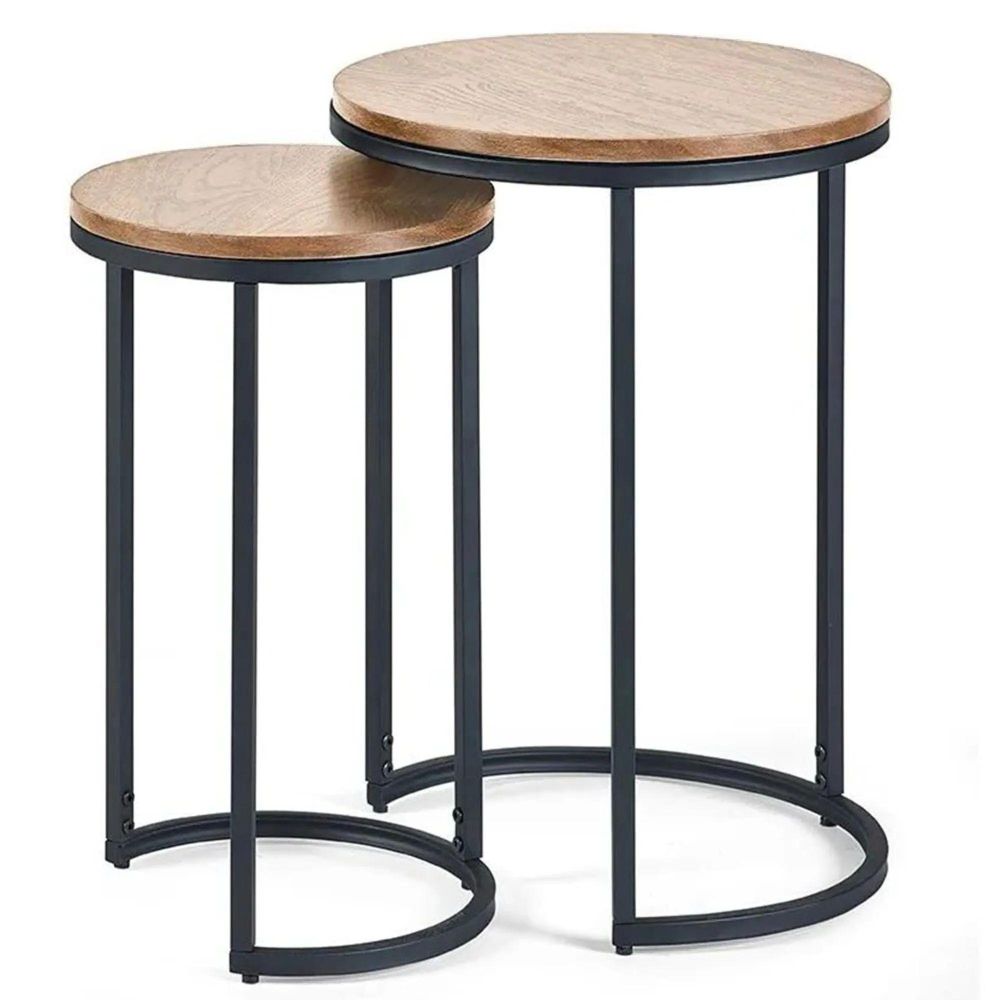 Clearance - Tribeca Oak Round Nest of 2 Tables - A329