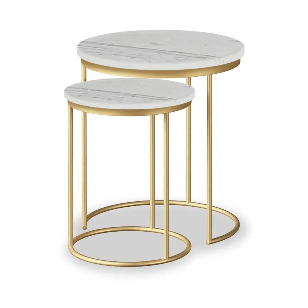 The Marmora White Marble and Gold Round Nest of 2 Tables brings together luxury materials and practical design for modern living spaces. Each table features a genuine white marble top with naturally unique veining, ensuring every set is one of a kind.