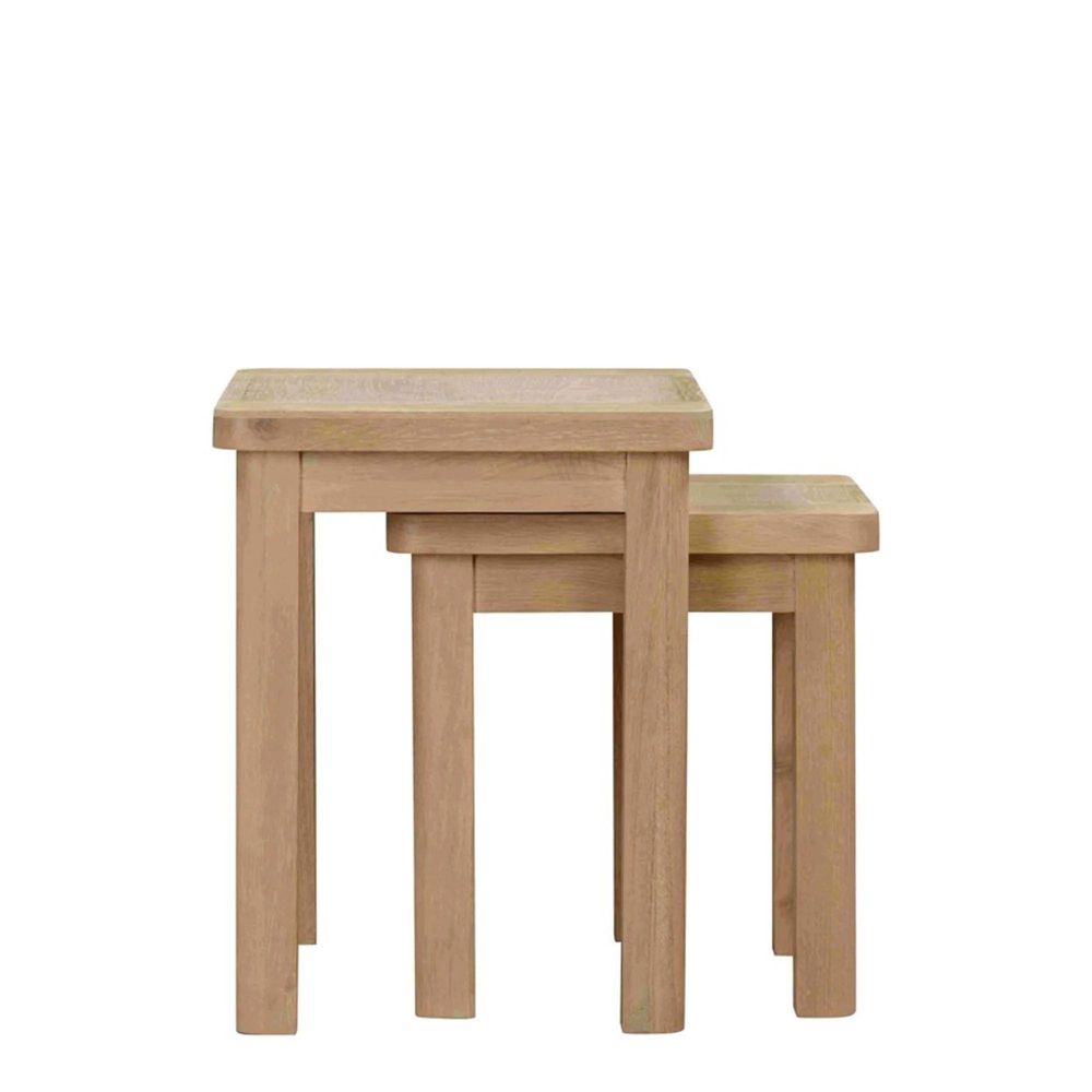 Item Code: 144-19 Hayley Oak Nest of Tables, is a classic shaker style piece of oak furniture characterised by its contemporary washed finish. Free Delivery