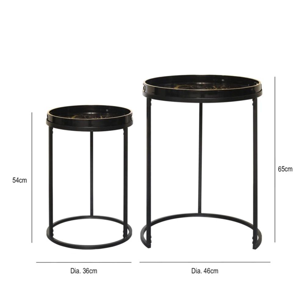 Item Code: MF371-02-BLGD Elevate your living space with the Set of 2 Olin Nesting Tables, a perfect blend of modern elegance and practicality. Featuring a sleek black tabletop paired with a luxurious gold-finished frame, these nesting tables bring a touch of sophistication to any room. Designed for versatility, the compact nesting design allows you to use them together for a layered look or separately to maximize surface space. Whether you're serving guests, displaying decor, or simply need a stylish side table, the Olin Nesting Tables are the ideal choice.Free Delivery